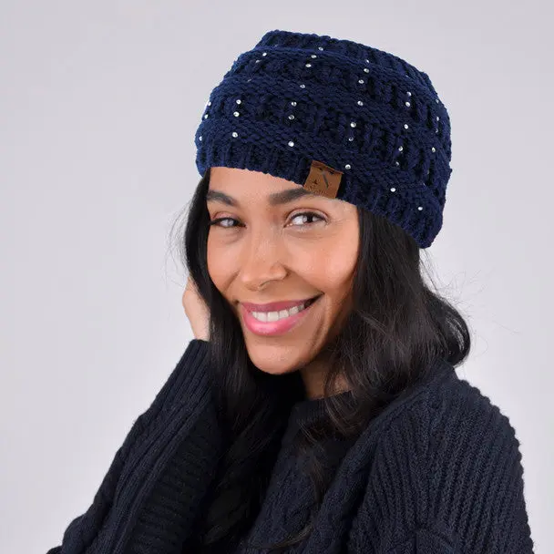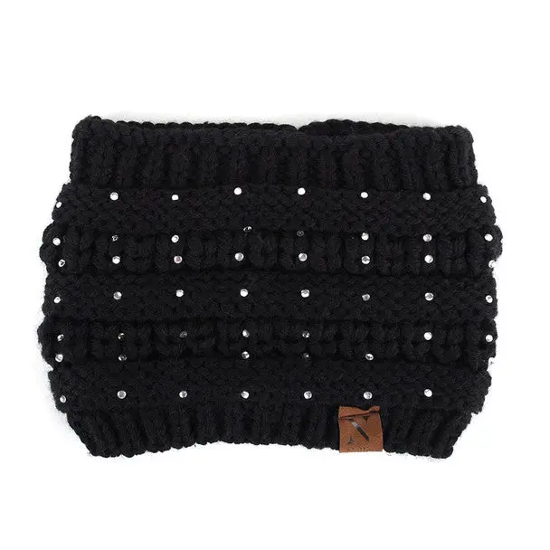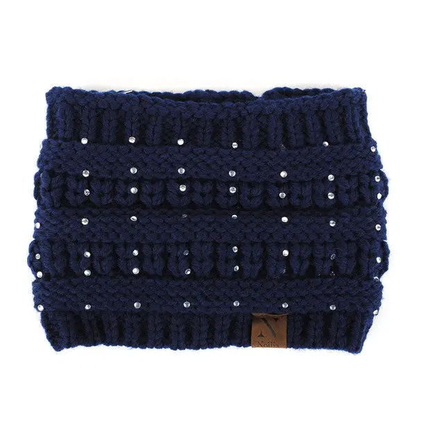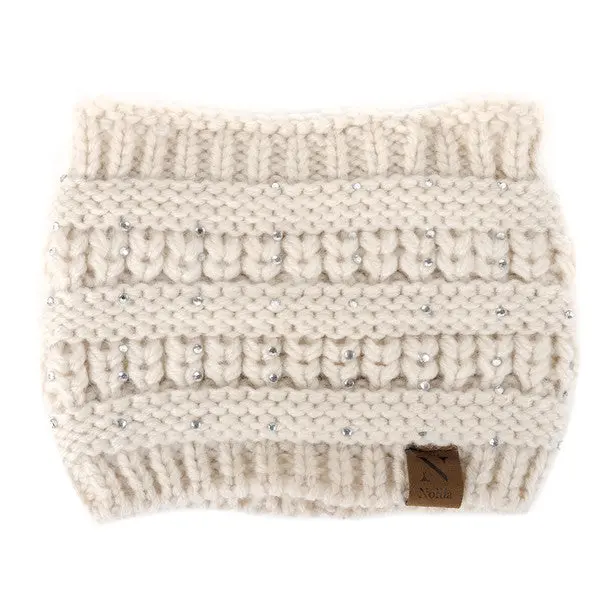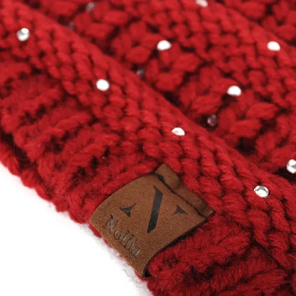 Nollia Women's Rhinestone Knit Winter Headband Ear Warmer – Wide Fit, Nollia