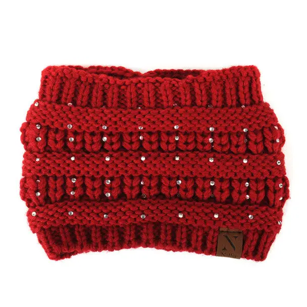 ✅ Material: 100% Polyester ✅ Fit: One size fits most ✅ Width: 6 inches ✅ Design: Rhinestone-studded knit for added elegance ✅ Comfort: Soft, stretchy, and warm for all-day wear ✅ Season: Ideal for spring, fall, and winter ✅ Color Options: Beige, red, navy, black