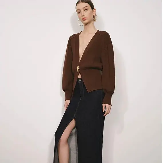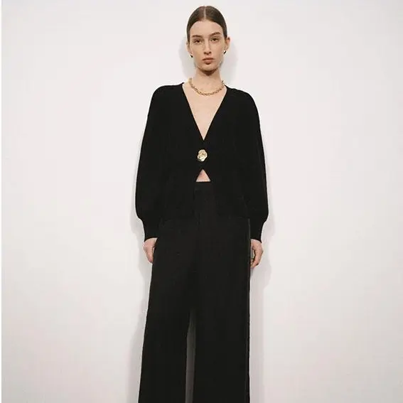 Very nice quality, heavy weight cardigan. The artistic button elevates this from simple to unique. The waist cinching design is wonderful!!