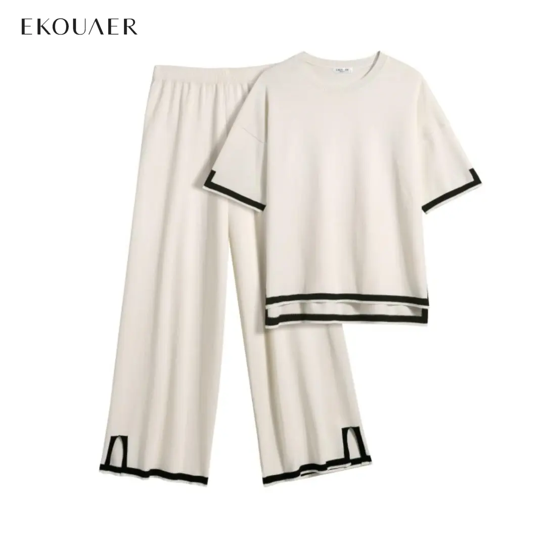 ·FEATURES: 2 pack sets for women features short sleeve pullover tops and wide leg long pants, solid color, crew neck, drop shoulder, side split hem, high low irregular, catching patchwork design adds a playful touch to your outfit.