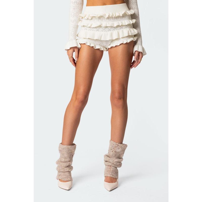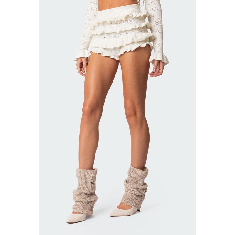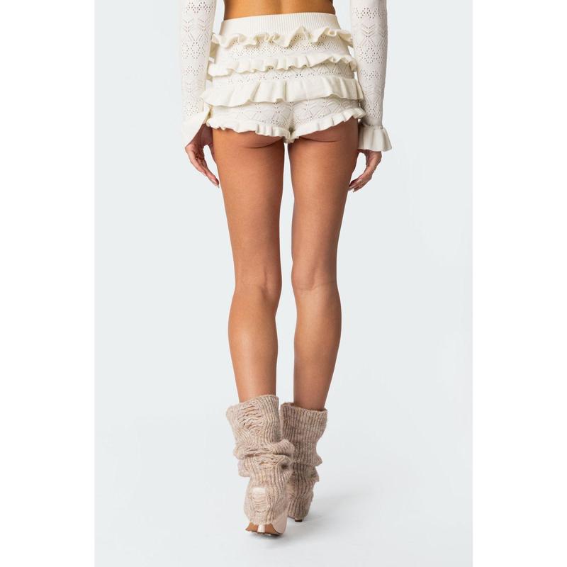 This knitted shorts are absolutely adorable! The material is so soft and comfortable, and they fit really nicely. They're perfect for mixing and matching with different outfits. Overall, I love how cute and versatile they are.
