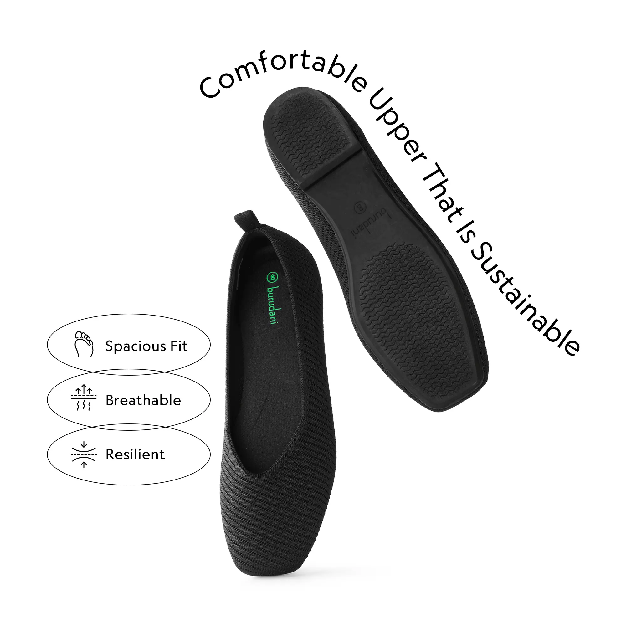 ·Sustainable Upper: Made with eco-friendly threads that are made from recycled plastic bottles. These flats are soft, breathable, and machine washable.