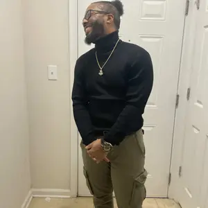Great sweater it's comfy warm love the material and the design all and all Great turtleneck sweater