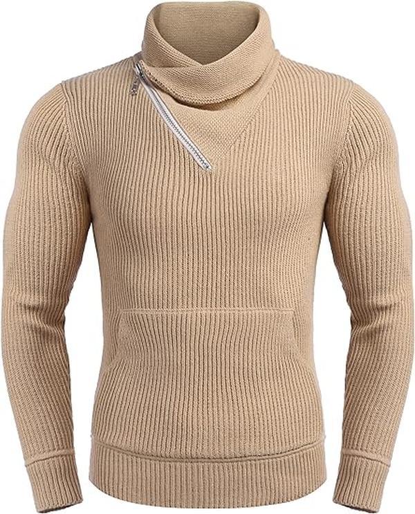 ·Feature --- Men shawl neck sweaters feature with zipper, turtle neck, cable knit, kangaroo pockets, long sleeve, slim fit version, especially suitable for fall and winter. It made of multi-color elements, bring you a unique fashion sense. Is the best choice for you daily life and can be matched with any individual style.