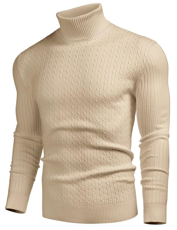 ·[Features] - This slim fit pullover sweater has solid pattern and basic design. Featuring with professional stitching, turtleneck, long sleeves, twist patterned, ribbed cuffs and hemline.