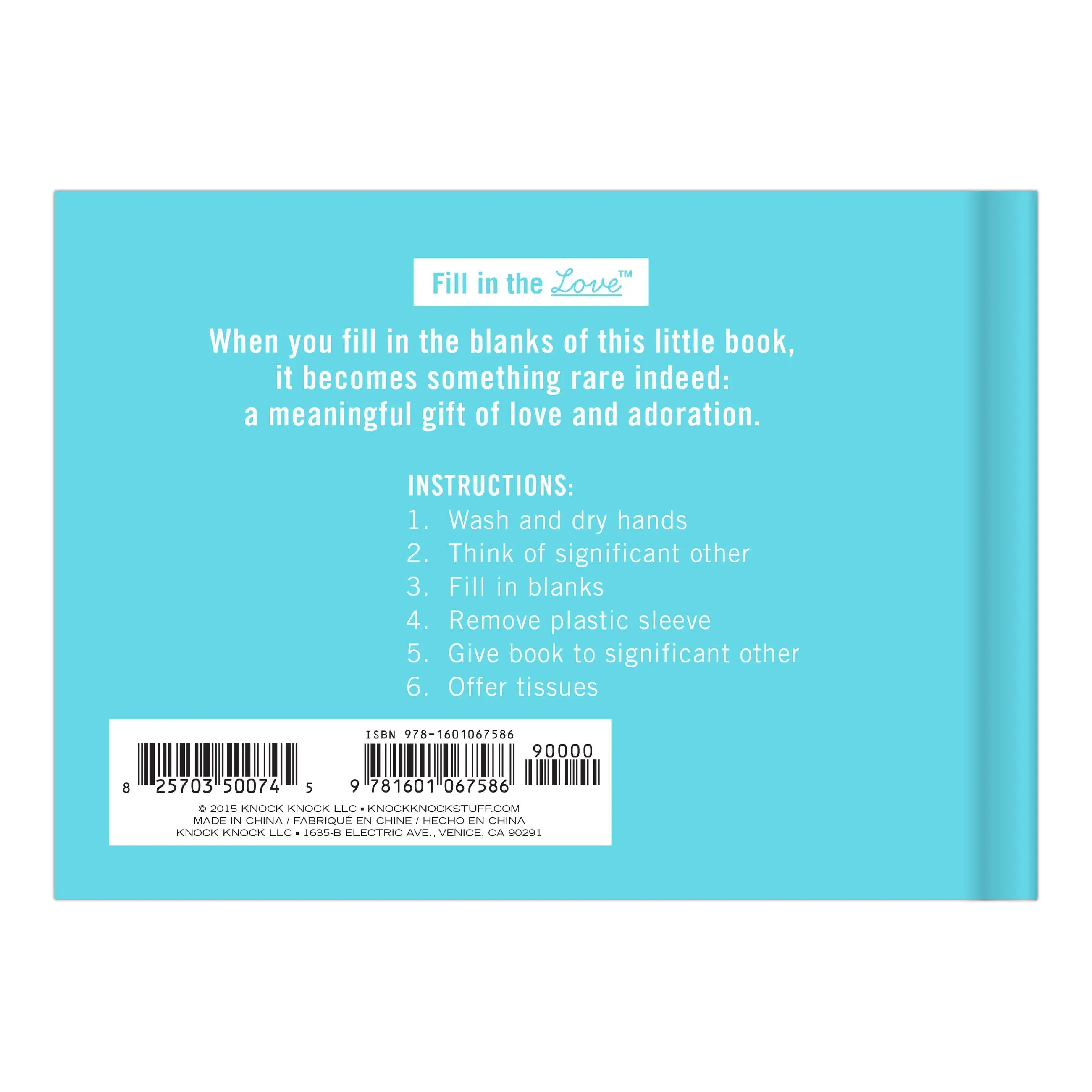 This little book contains fill-in-the-blank lines to describe some aspect of affection about being a twosome. Just complete each line and voilà: you have a uniquely personal gift your numero uno will read again and again. Make it as lovey-dovey, sappy, or frisky as you choose!