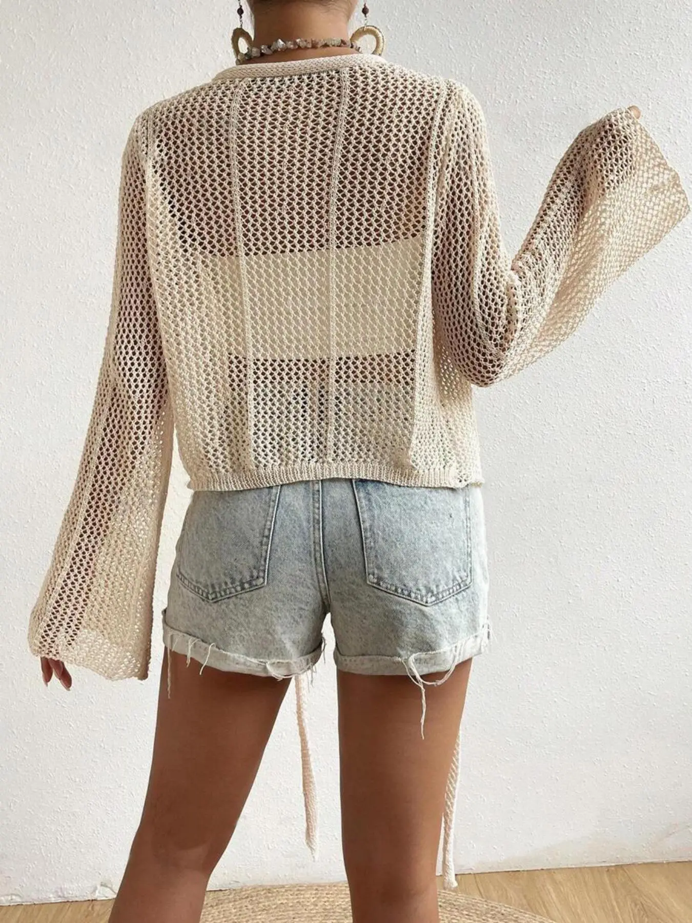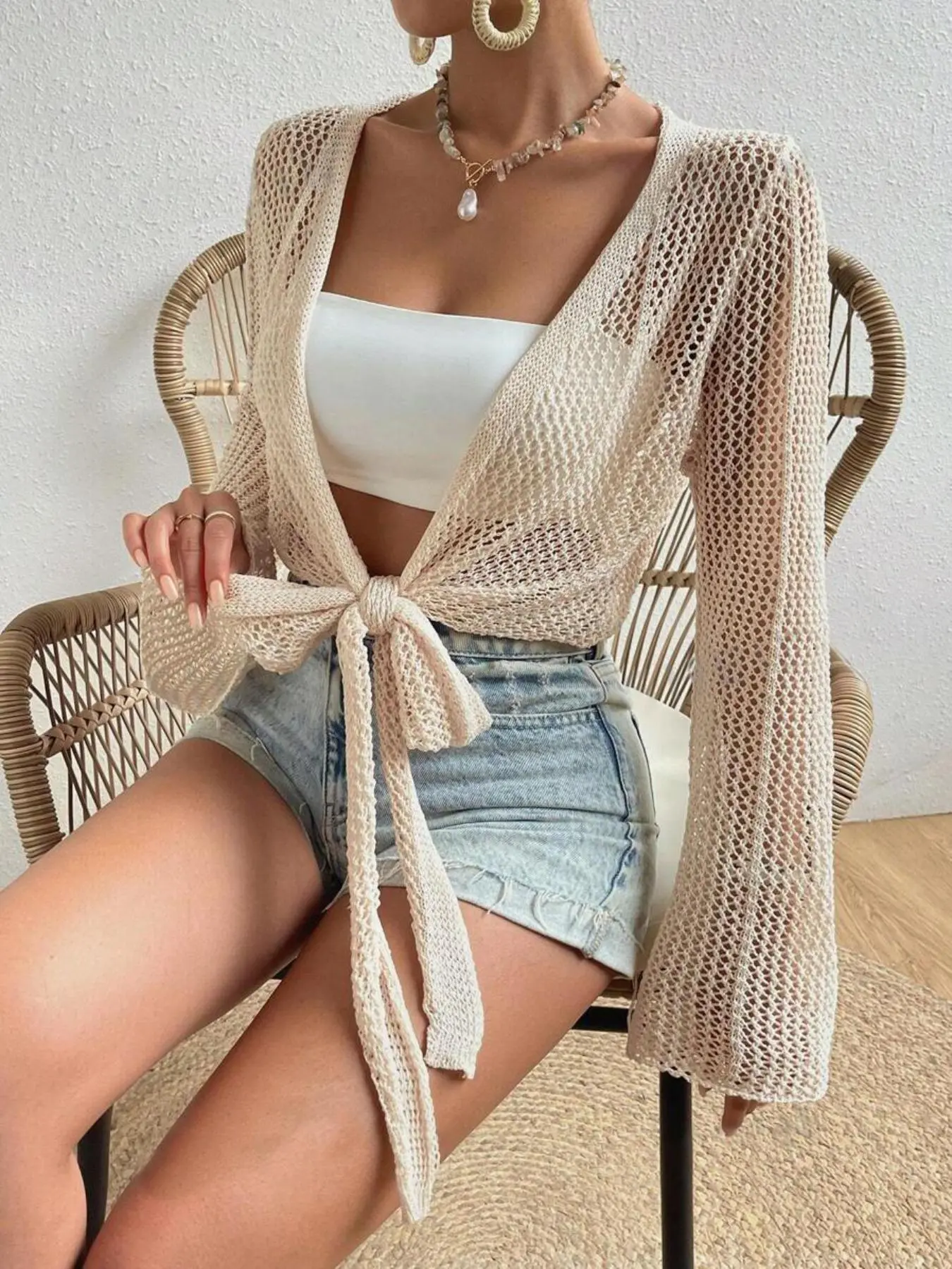 【Knot Front Feature】: This cardigan showcases a unique knot front design, adding a trendy touch to your summer beachwear.