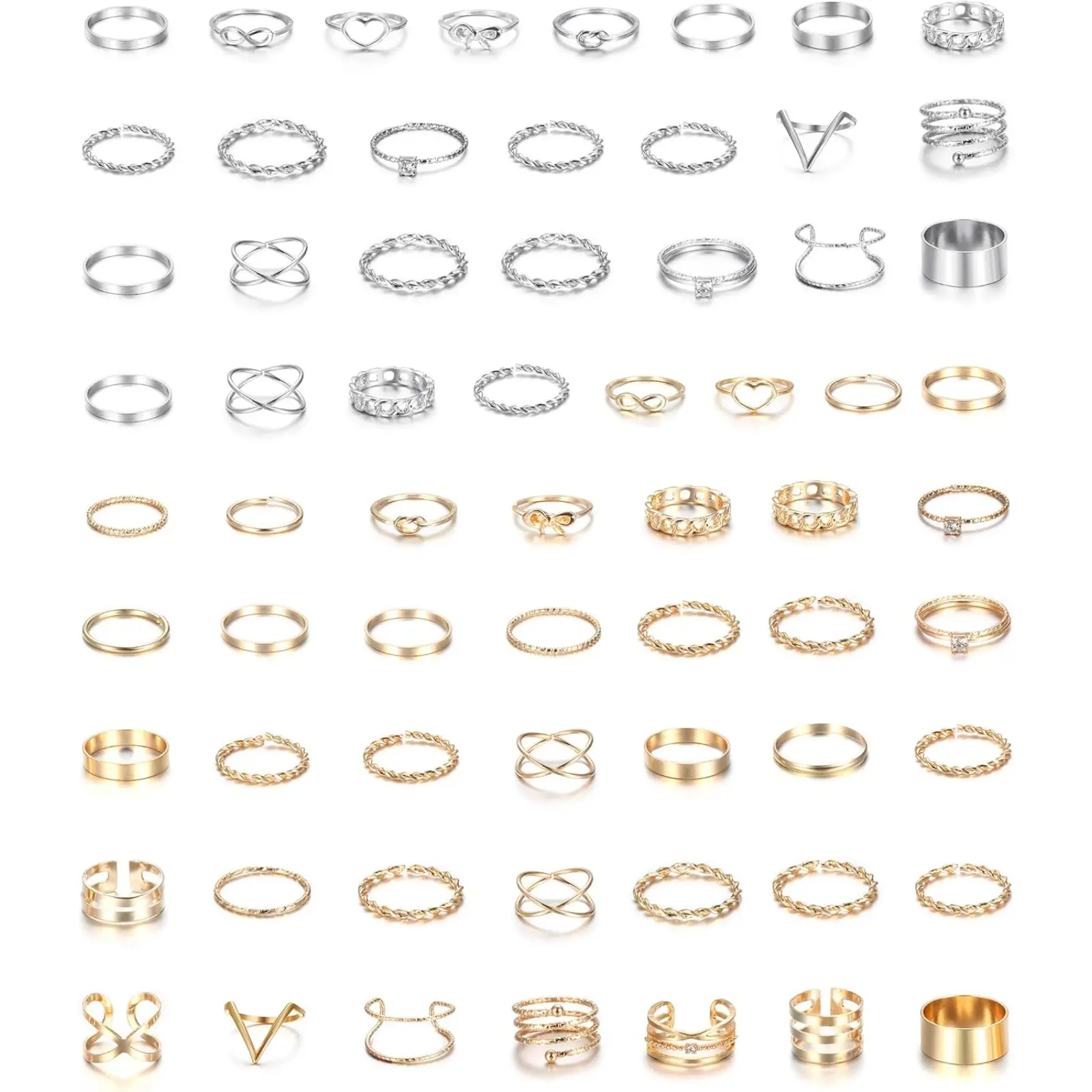 ·AFFORDABLE KNUCKLE RING: You can get 65 vintage stackable rings of different styles in one order, to meet your different daily needs,We have bow ring, rhinestone ring, infinite symbol ring, hollow ring, open ring, tear drop ring, twist ring, geometric pattern ring, irregular symbol ring and so on,a variety of fashion styles for you to choose.