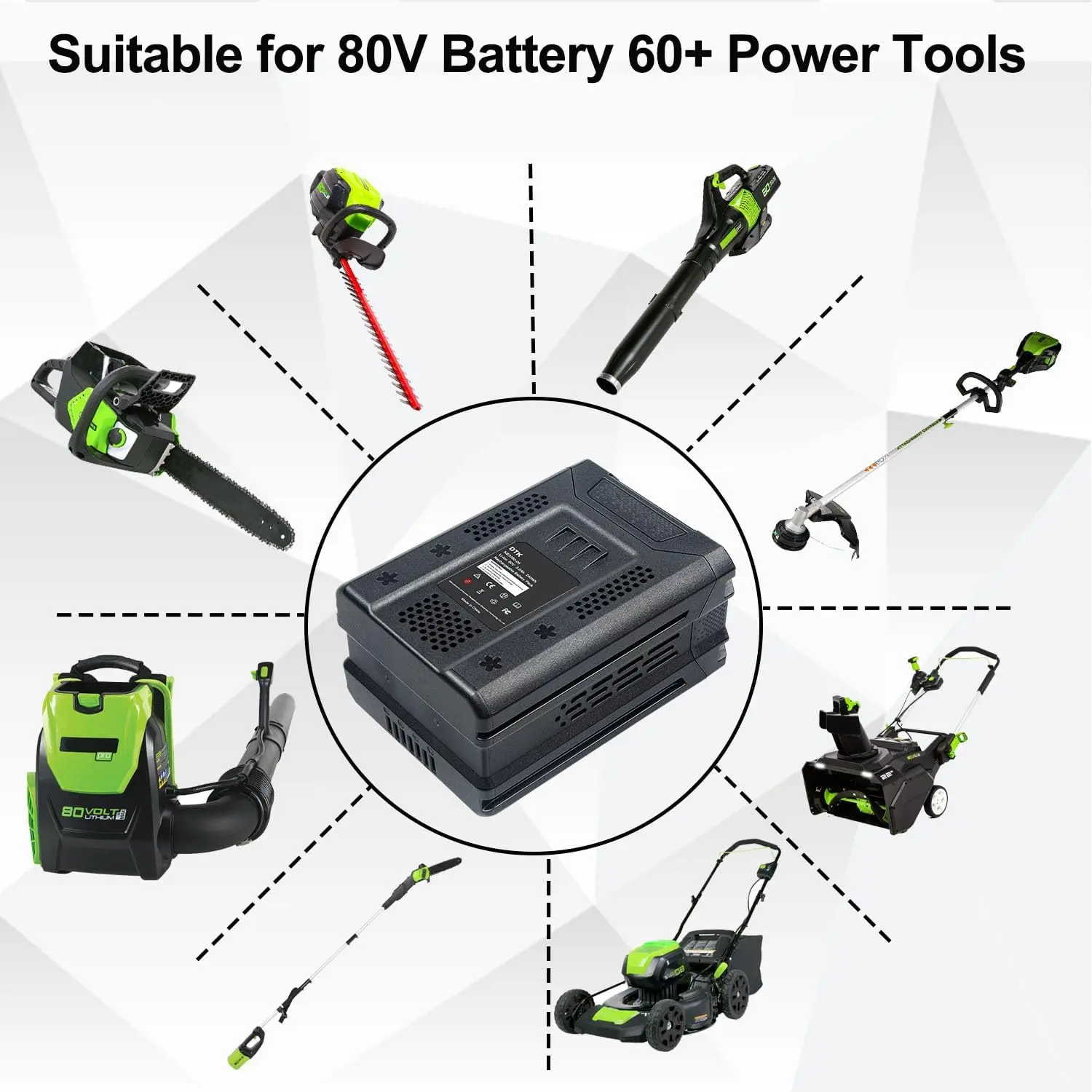 【Widely Compatible】 80V replacement for compatible with Greenworks 80v tools, about 60+ tools, Max ED80L00, TL80L00, ST80L210, GBL80320, compatible with lawn mower charger GCH8040(Not Fit for Kobalt)