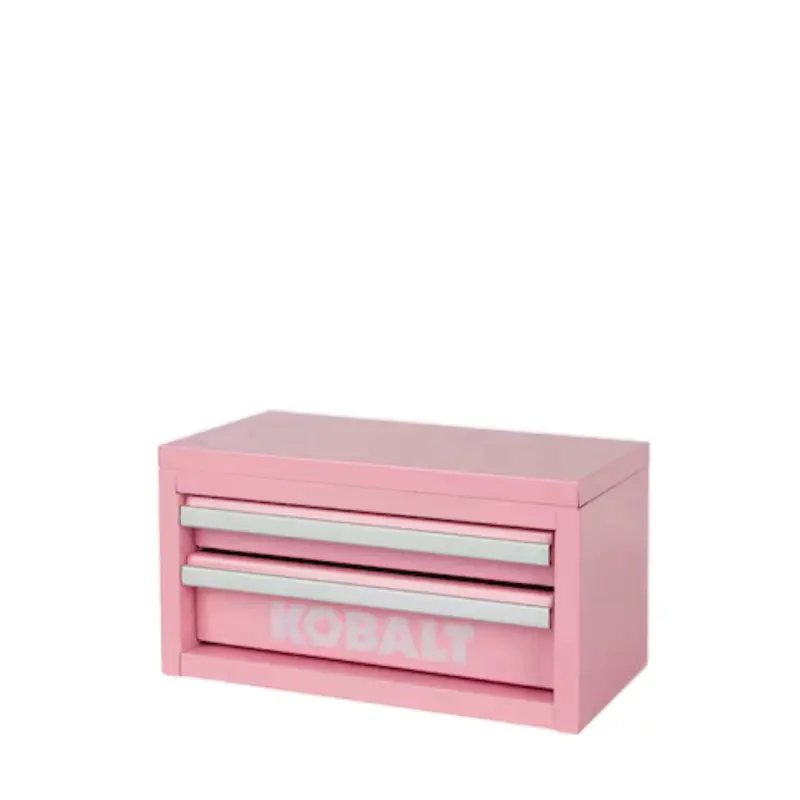 The KOBALT Pink Mini Tool Box is perfect for organizing small tools and accessories. It features 2 drawers, making it ideal for keeping your tools tidy and accessible. The pink color adds a touch of style to your workspace.