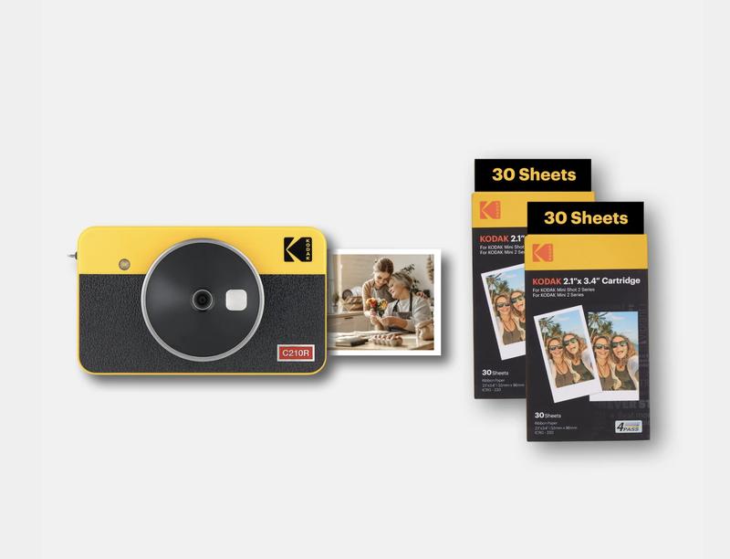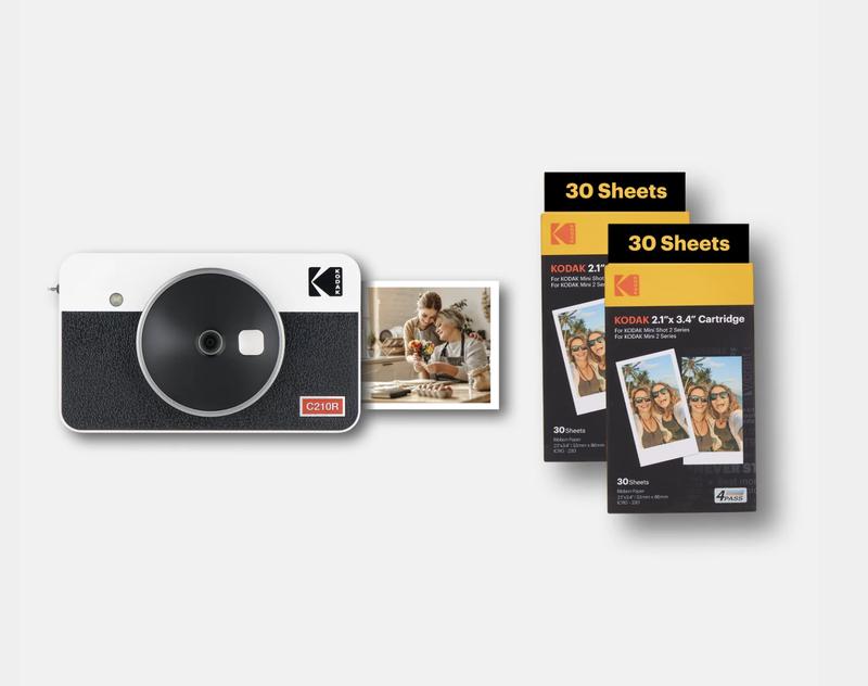 KODAK Mini Shot 2 Retro 4PASS 2-in-1 Instant Digital Camera and Photo Printer (2.1x3.4 inches) Initial 8 Sheets + 60 Sheets Bundle
