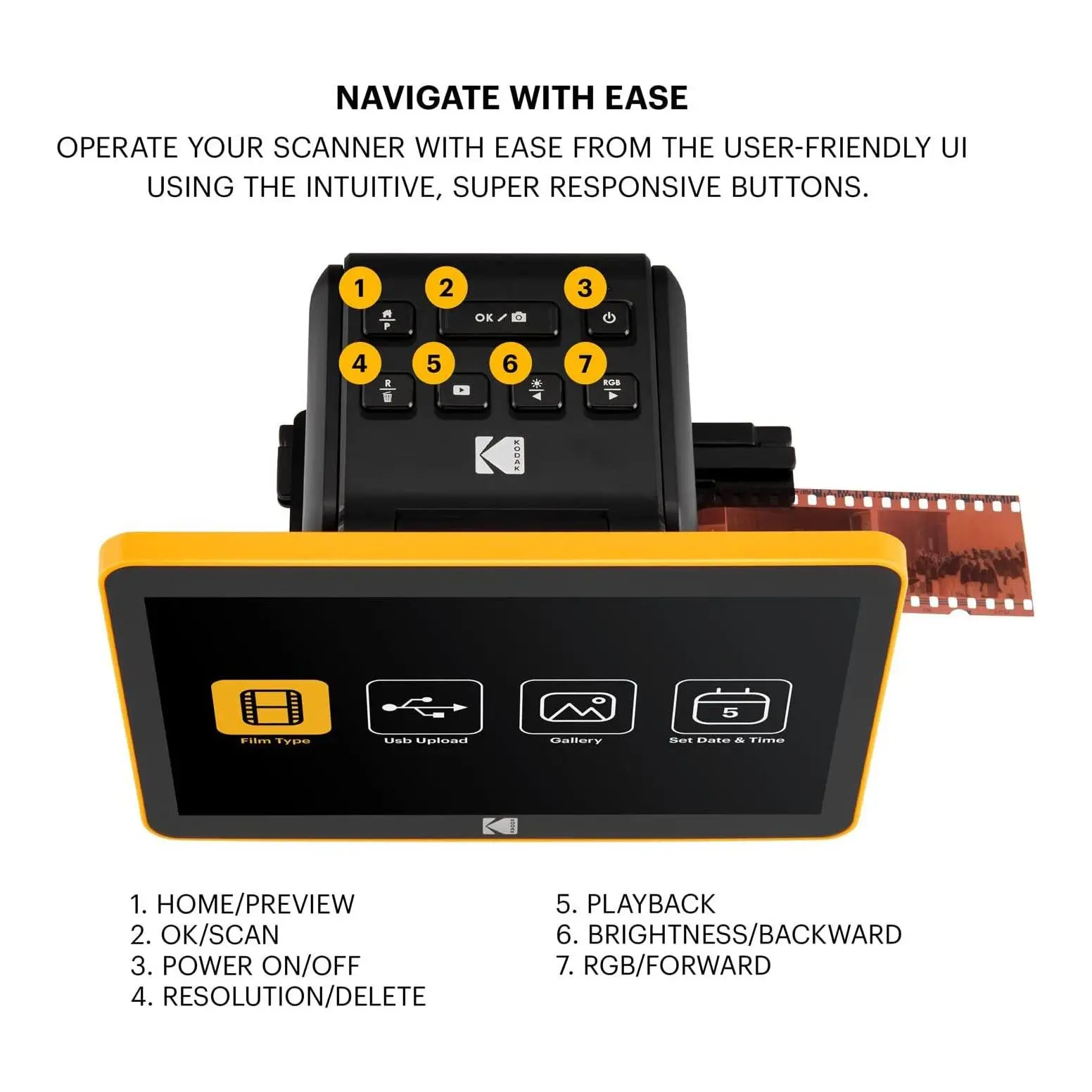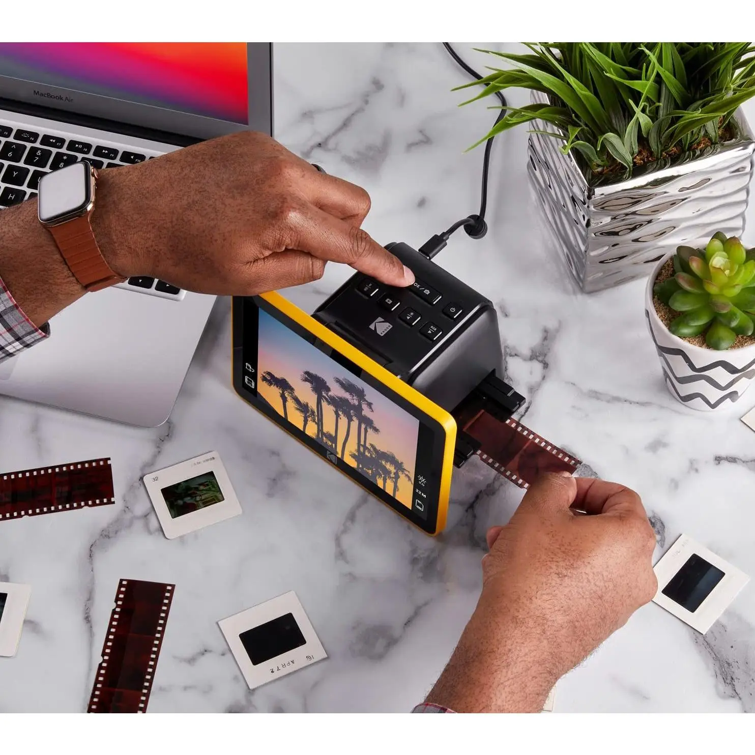 Preserve your precious memories. Love reminiscing with film negatives and slides from yesteryear? View and digitally convert your color and black and white negatives and 55mm slides with this easy-to-use portable scanner. It delivers crisp, clear, beautiful images with the press of a button. Watch old memories come to life on the 7" color LCD screen. From Kodak.