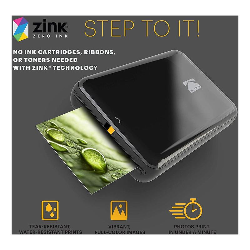 ·Includes Step wireless photo printer, USB cable, starter pack of 2" x 3" Kodak zink photo paper, and quick-start guide