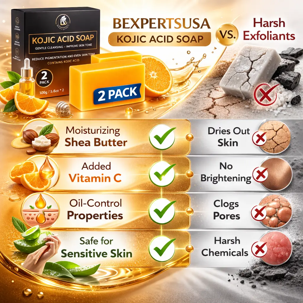 Reveal Your Most Radiant Skin with Every Wash Achieve a balanced, glowing complexion with BEXPERTSUSA Kojic Acid Skin Clarifying Soap. This professional-strength beauty bar is meticulously crafted for those seeking to refine their skin's texture while maintaining deep hydration. We’ve combined the exfoliating power of Kojic Acid with the antioxidant brilliance of Vitamin C to help manage oil and diminish the look of uneven tone. Unlike standard soaps that can be drying, our formula features a lush blend of Shea Butter and Camellia Oil, making it safe and effective for sensitive and acne-prone skin. Whether you are targeting specific dark spots or looking for an all-over body refresh, these authentic bars provide the gentle, clean-label path to a smoother, more radiant you.