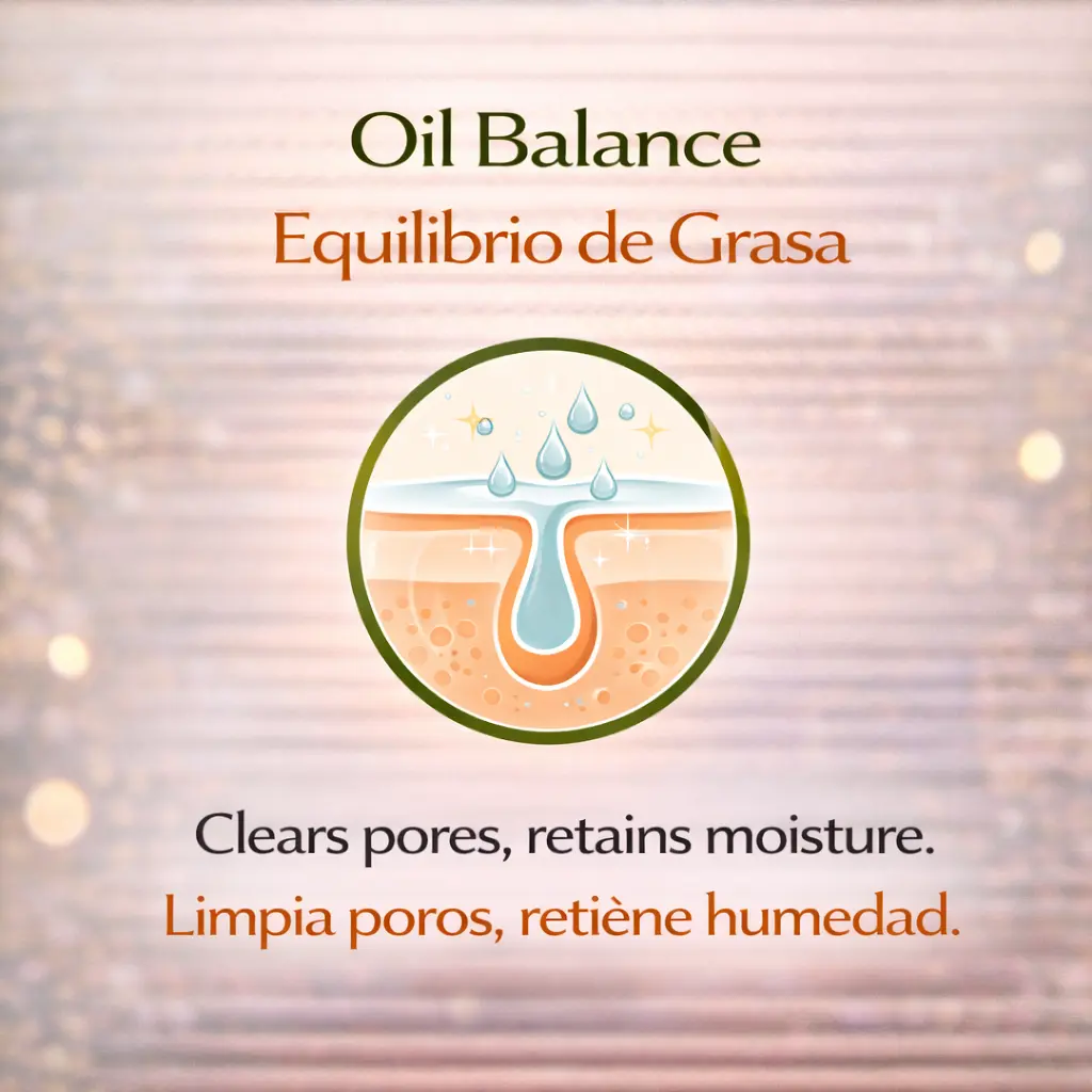 GENTLE EXFOLIATION & CLARITY | EXFOLIACIÓN SUAVE — Effectively removes dead skin cells and impurities, helping to refine skin texture and manage excess oil without stripping away essential moisture. / Elimina eficazmente las células muertas e impurezas, ayudando a refinar la textura de la piel y controlar el exceso de grasa sin eliminar la humedad esencial.