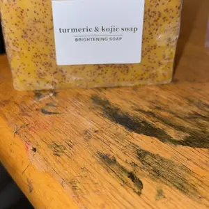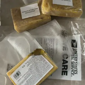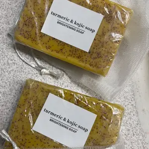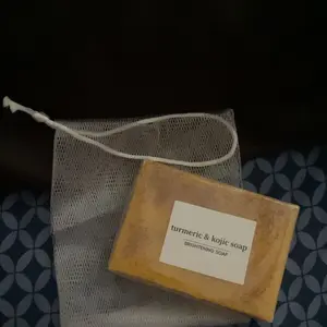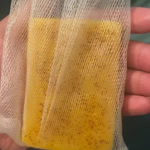 I love the color, the consistency, you can see the turmeric specks peaking thru the top. They even come with mesh bags for storage or to use with bar inside to remove dirt & grime. Will post videos to track the progress, stay tuned.