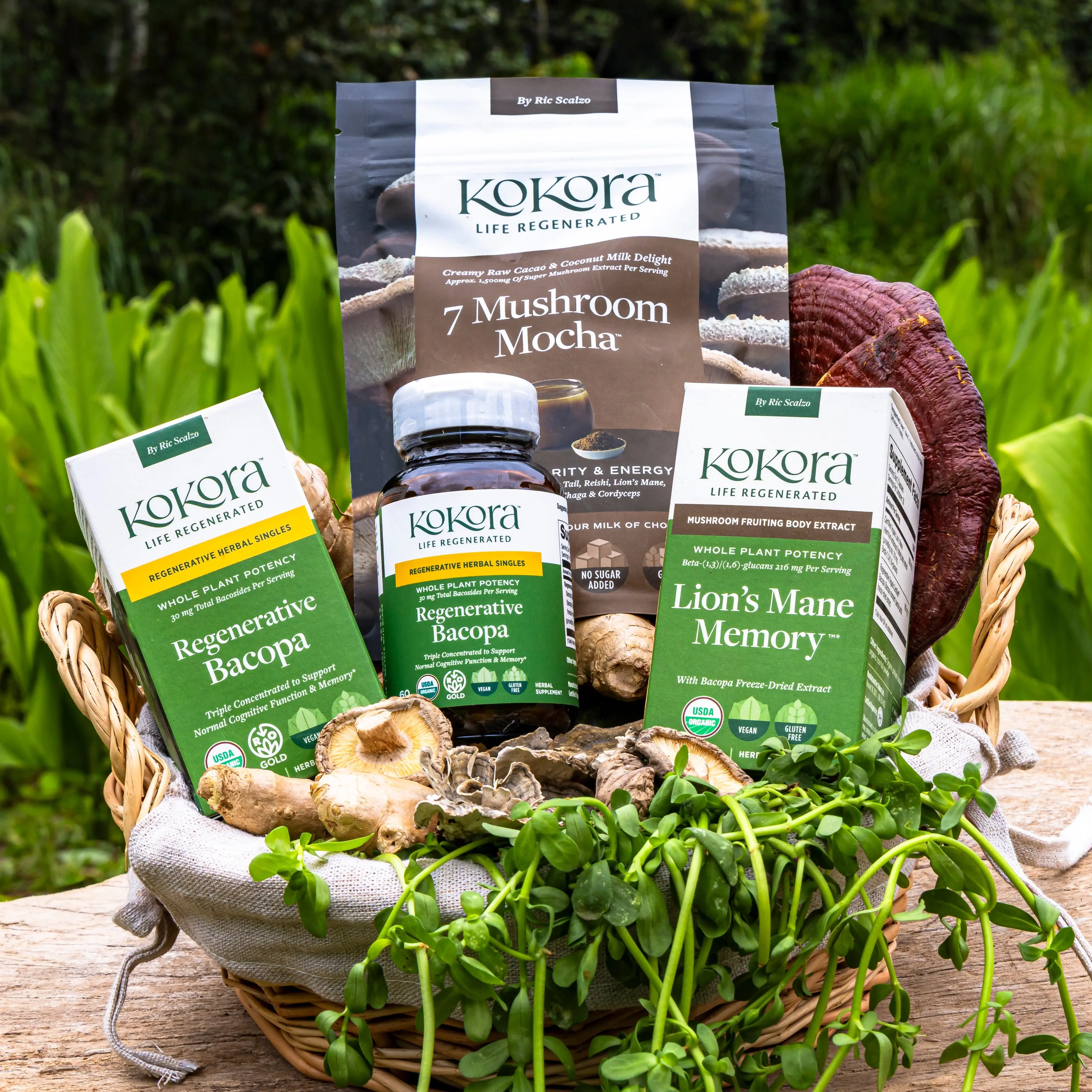 Lion's Mane Memory ™ Regenerative Bacopa™ 7 Mushroom Mocha™ Our Mind and Memory Bundle offers a powerful approach to supporting focus, clarity, and overall cognitive wellness.* Rooted in Traditional Chinese and Ayurvedic wisdom, Lion’s Mane and Bacopa are renowned for enhancing mental sharpness and promoting cognitive function—blending ancient tradition with modern science to naturally nourish the mind.*