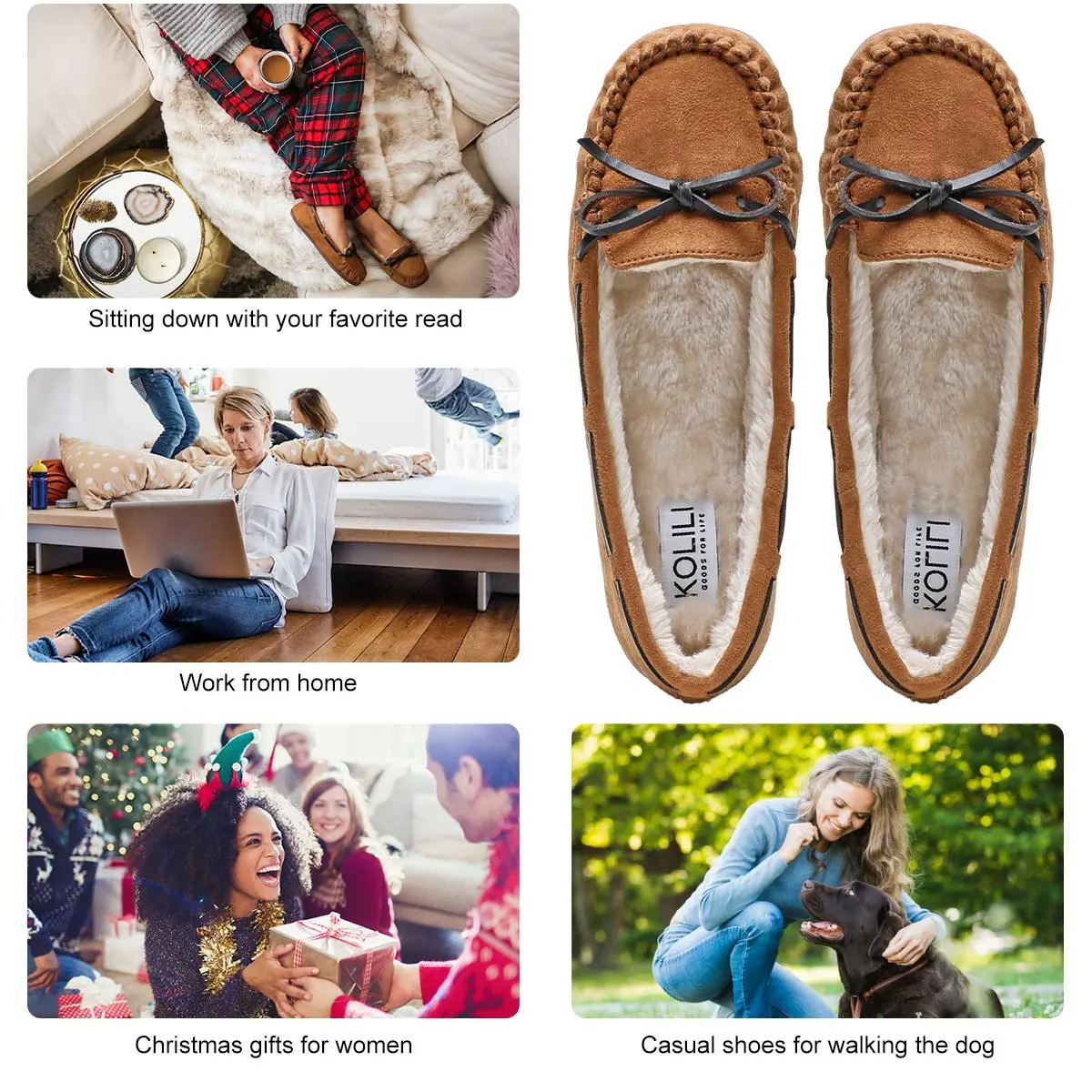 5. KOLILI Women's Moccasins Comfortable Soft Indoor Cotton Shoes Outdoor Warm Versatile Home Flatform Suede Flats with Non-slip Rubber Soles Round Toe Slip On Seasons Footwear SpringStatements