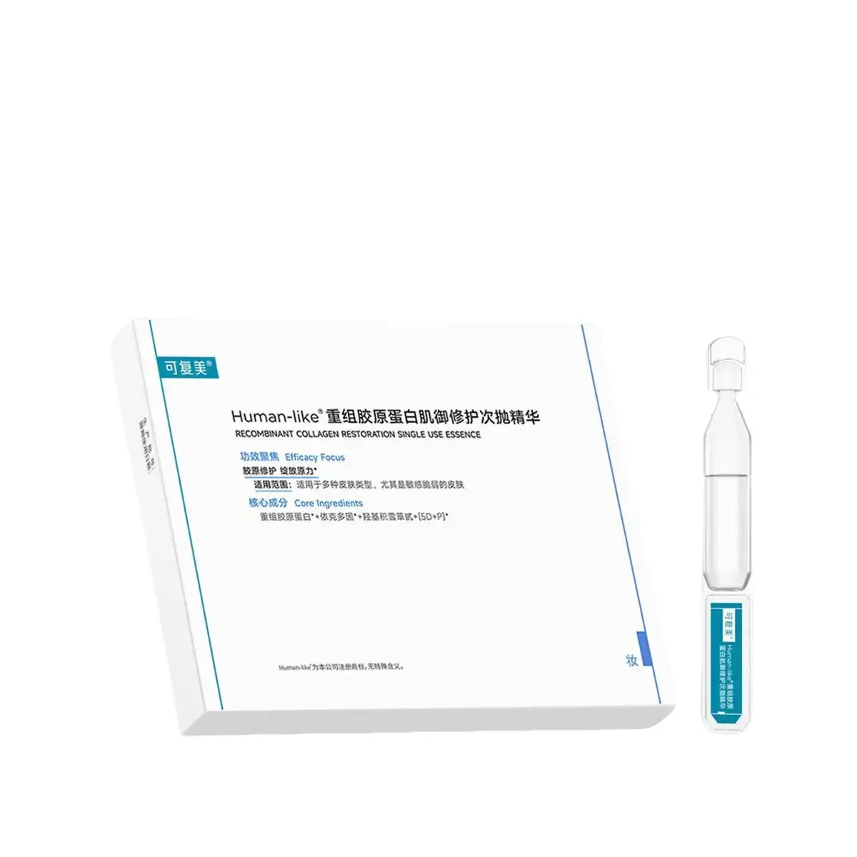 Discover the KOMFYMED Recombinant Collagen Restoration Single Use Essence! Each box contains 5 pcs of 1.5ml essence, perfect for travel. This hyaluronic acid serum is designed for sensitive skin, offering fresh, hygienic care. It aids in redness relief and skin barrier repair. Ideal for those seeking a convenient solution for their skincare needs.