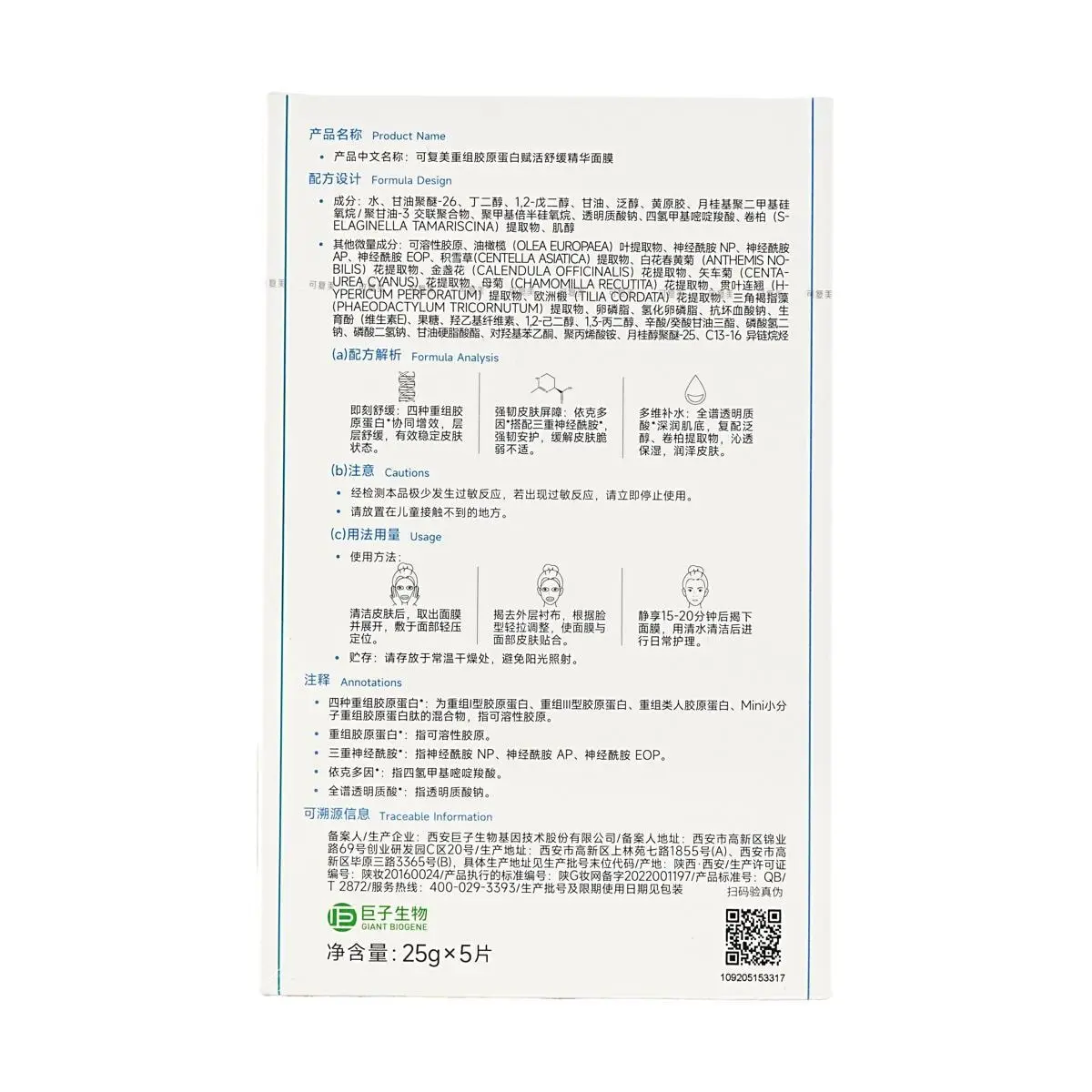 ·The product features C5HS recombinant collagen + olive leaf extract, which improve redness and defend against internal and external skin troubles.