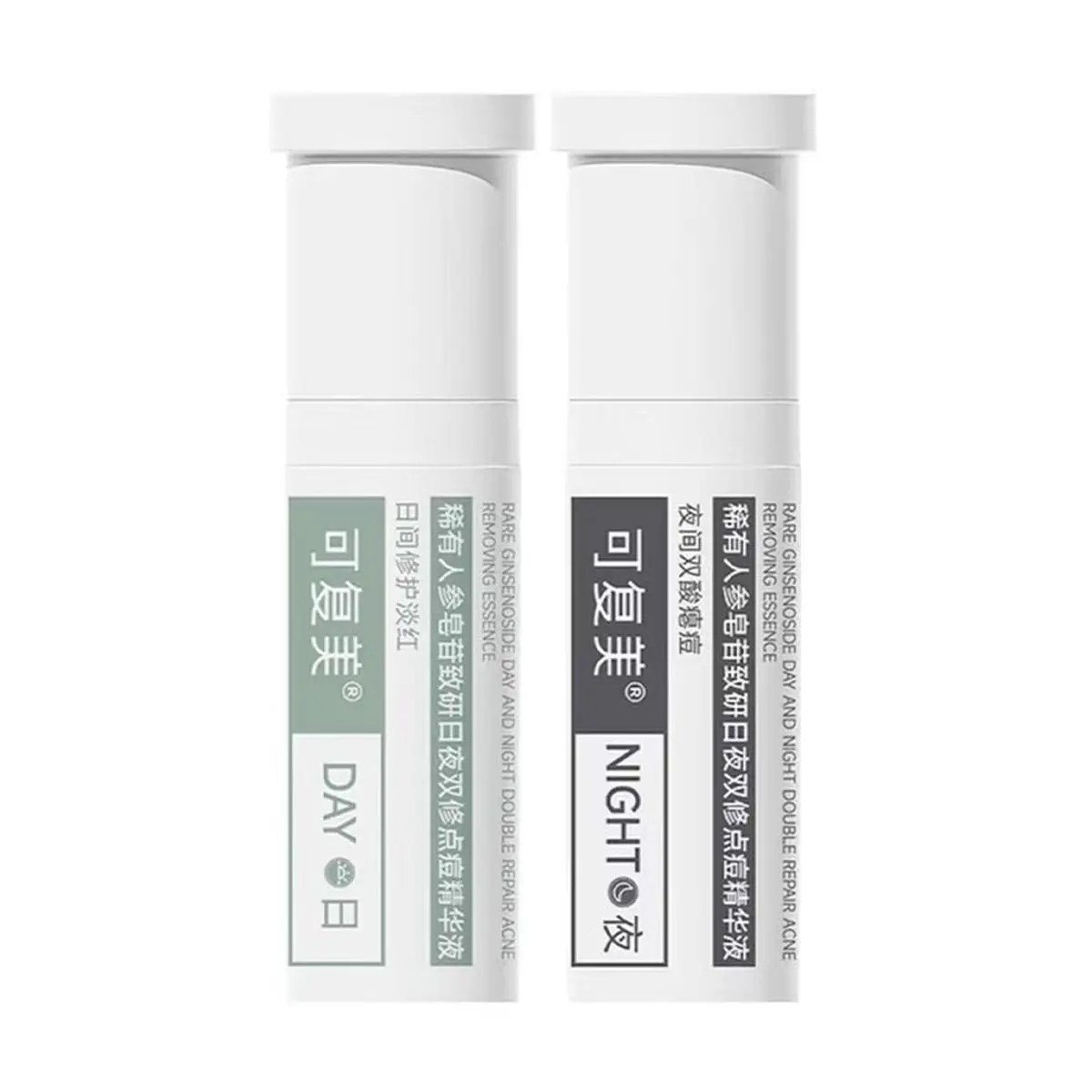 KOMFYMED Spot Treatment Set - Ginseng Acne Serum for Day & Night Repair, Fades Redness & Marks, 5ml + 5ml