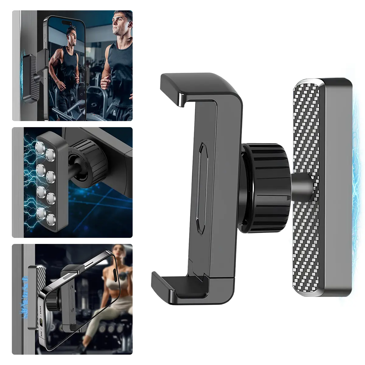【UPGRADED POWERFUL MAGNETIC SUCTION】Gym Dual Magnetic phone holder features magnetic panel and magnetic base.