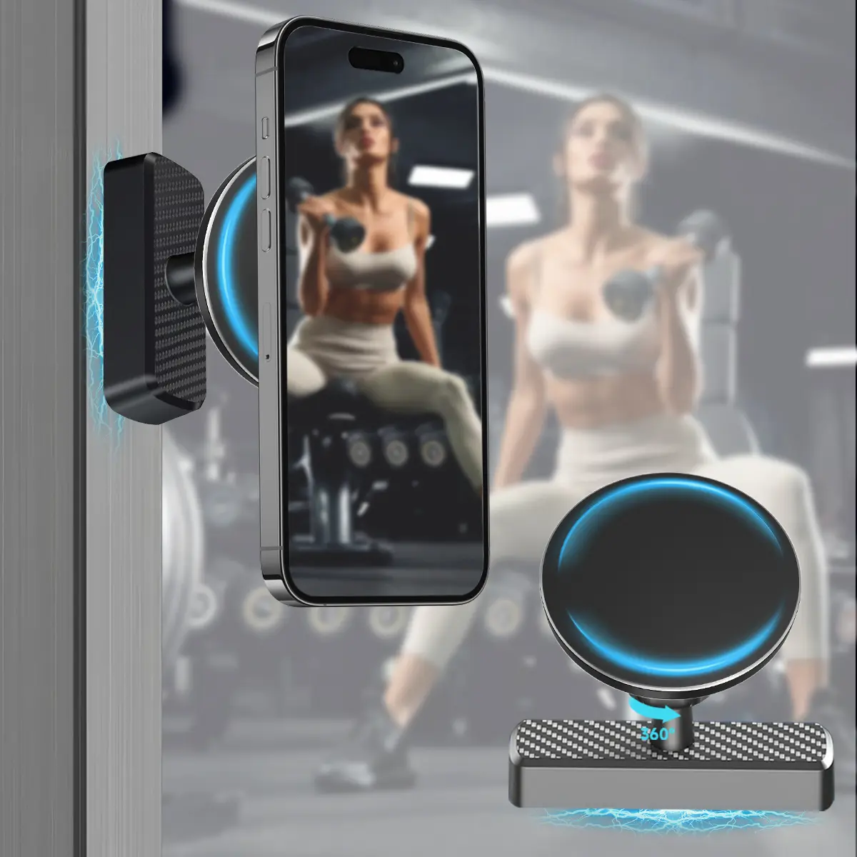 【SNAP CONNECTION & 360° ROTATION】360° rotating sphere allows for free adjustment, and the magnetic connection allows you to attach your phone at any angle, capture your training form and growth moments from the best perspective.