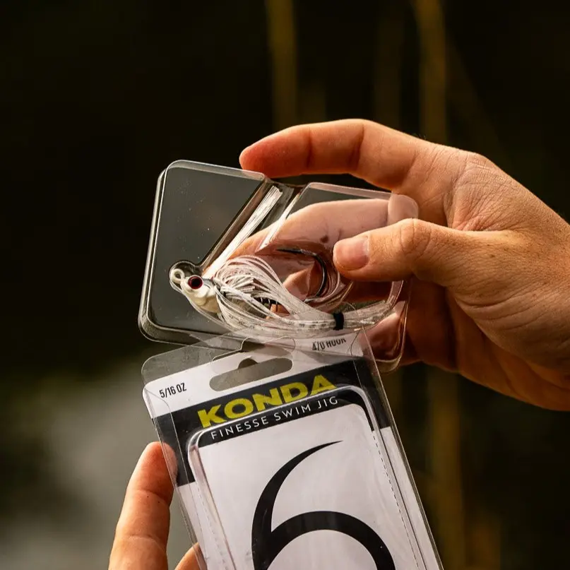 Introducing the Konda Finesse Swim Jig, a revolutionary tool crafted specifically for those demanding moments when finesse is paramount. Engineered to excel under pressure, this innovative jig boasts a fine wire hook size (4/0), facilitating the attachment of downsized trailers for an irresistible imitation of smaller baitfish profiles. Whether you're skipping around cover or burning through grass and trees, the Konda delivers unparalleled performance.