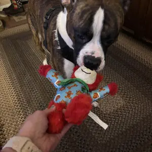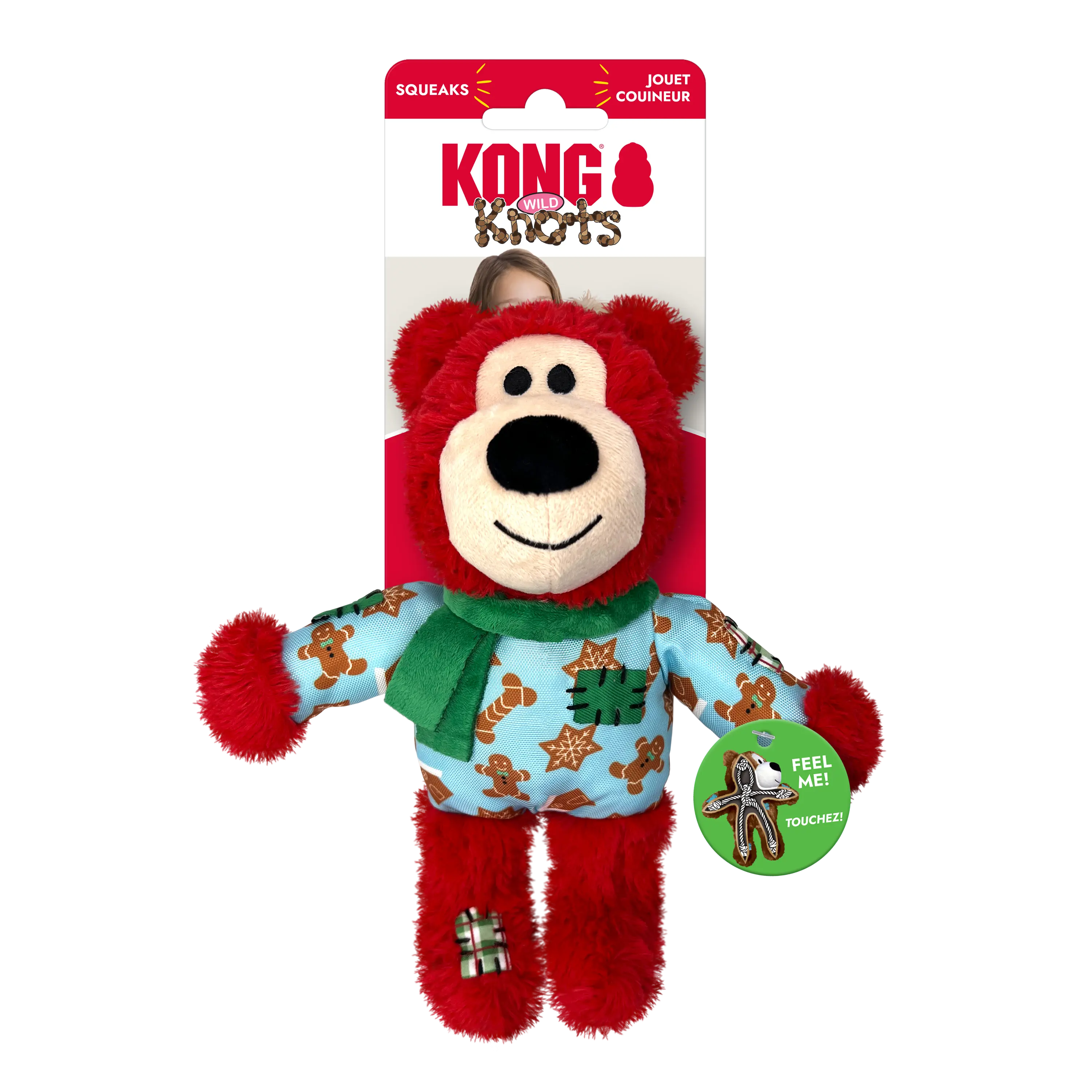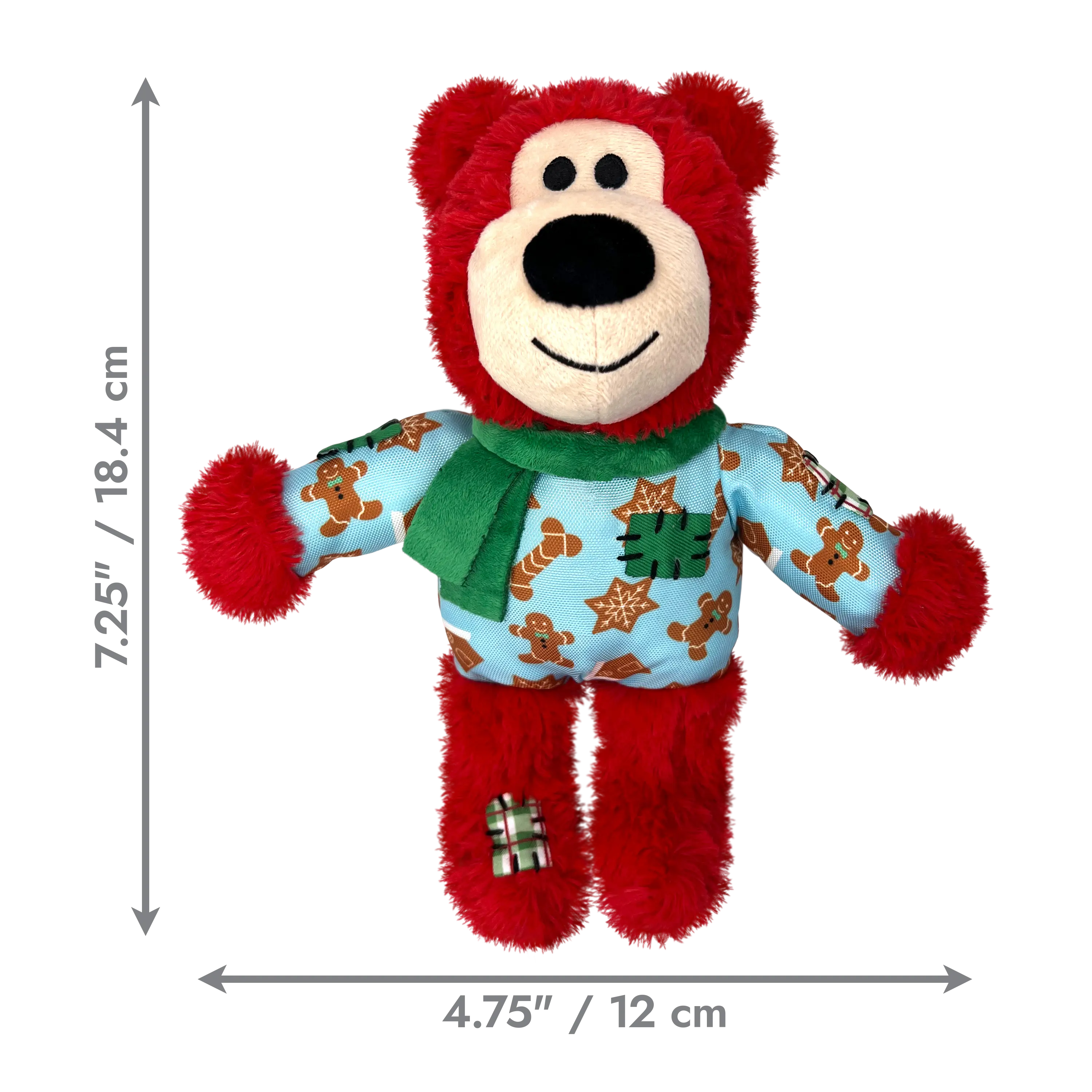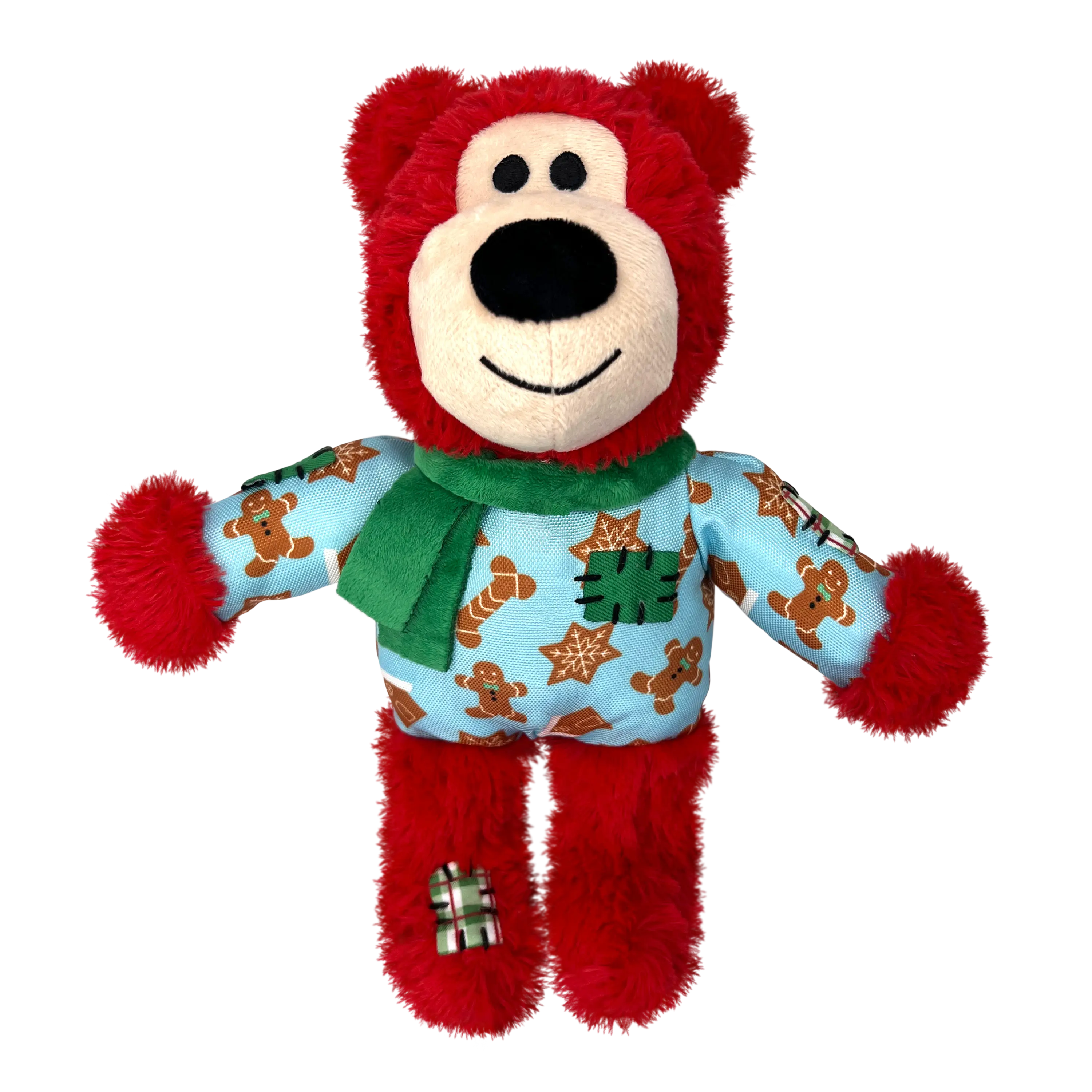 KONG Wild Knots Bear is ready for the holidays in its winter sweater and scarf! This super-soft plush bear is designed for light chewing sessions, featuring an internal knotted rope and reinforced layer of material that caters to dogs' playful instincts, such as thrashing, wrestling, and tugging. A squeaker keeps play sessions going, but Wild Knots Bear is the perfect snuggle buddy when naptime comes. Our adorable bear is suitable for different sizes of dogs, from medium breeds to tiny pups. It also makes a fantastic seasonal gift for the special dog in your life, ensuring they can join in on the holiday fun!