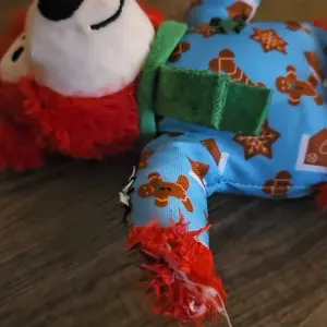 KONG Holiday Wild Knots Bear is bundled up in its winter sweater and scarf! It features an internal knotted rope, a reinforced layer of material, and a squeaker, catering to instincts, such as thrashing, wrestling, and tugging. This adorable bear is suitable for medium and small dogs and makes a great seasonal gift.