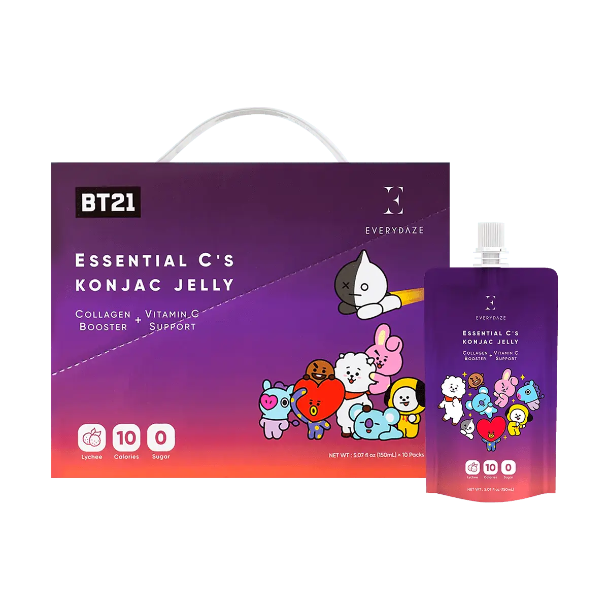 Boost your day with a delicious burst of vitamin C! Introducing EVERYDAZE with BT21 Essential C's Konjac Jelly in Lychee flavor! 🌟