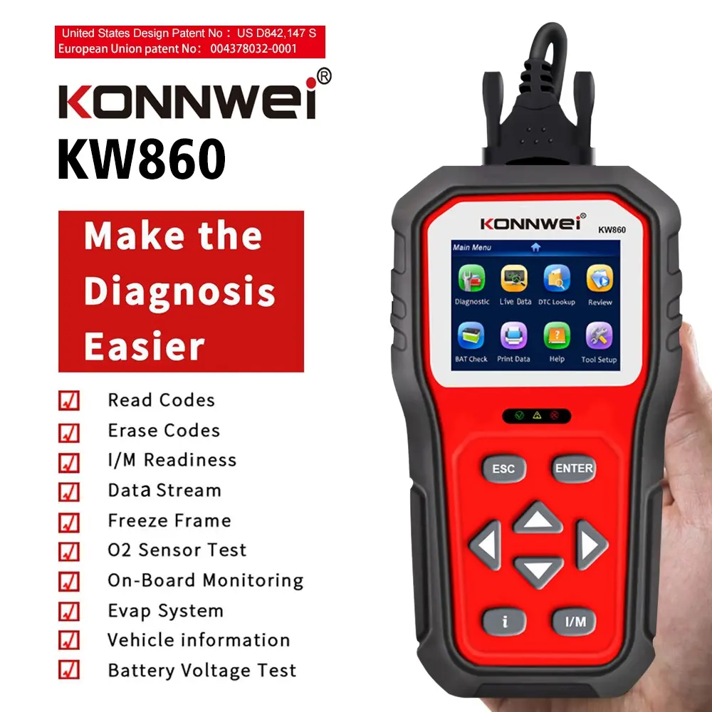 KONNWEI KW860 Unique OBD2 Scanner Code Reader, OBD2 Car Diagnostic Tool, Engine Fault Diagnosis, Can Scan Instrument with I/m Preparedness