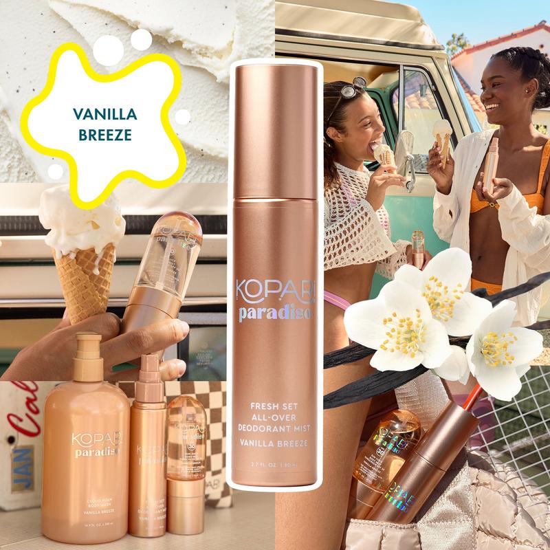 Vanilla Breeze: Coconut water, banana leaf, macadamia flower, and toasted almond make this vanilla anything but basic. Sweet, cozy, and effortlessly chic - like warm skin and your softest hoodie on repeat.