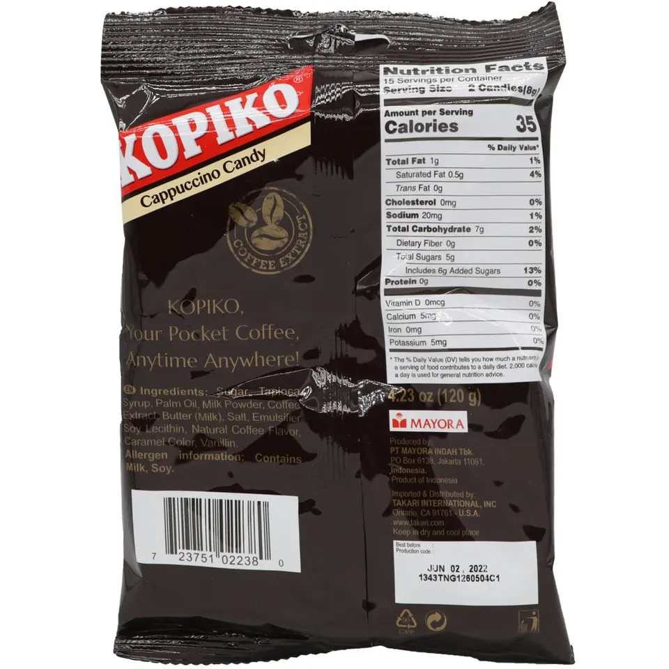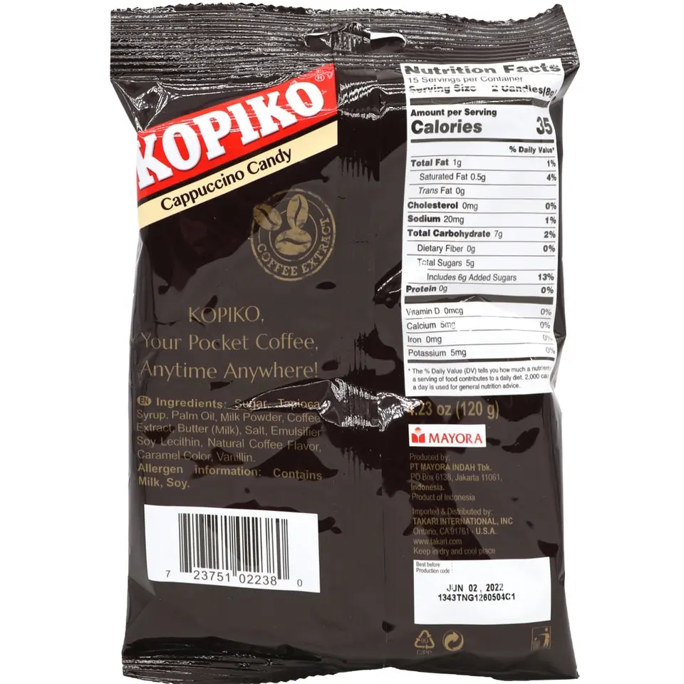 Rich Coffee Indulgence: Enjoy the smooth, creamy taste of Kopiko cappuccino candy! Each piece blends bold coffee flavor with a touch of sweet cream, giving you the perfect cappuccino experience in a bite-sized treat.