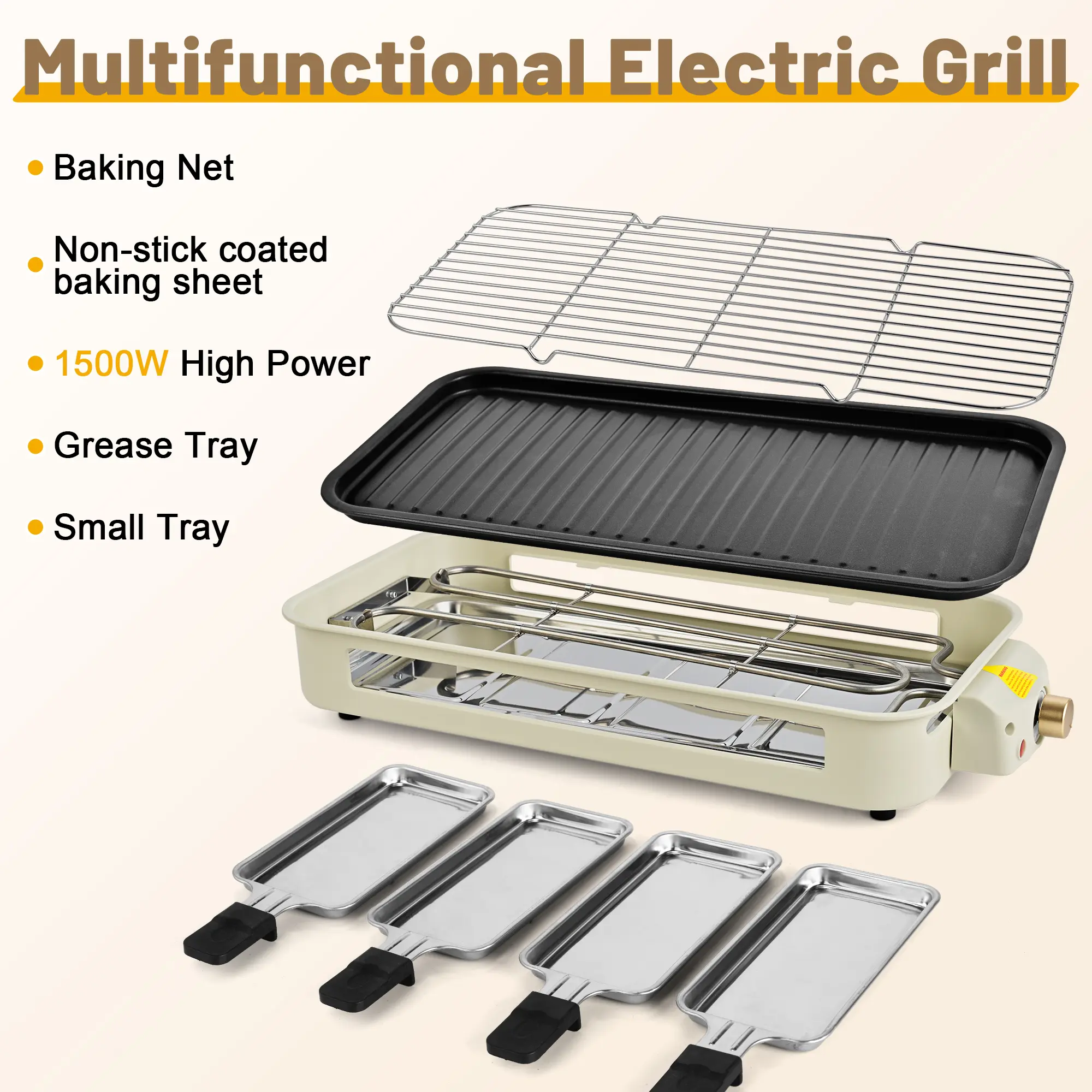 ·NON-STICK COATING GRILL PLATE: The grill plate is coated with a non-stick coating, which prevents food from sticking and makes cleaning easier. The raised ripples on the grill plate effectively block excess fat, making the barbecue healthier and more delicious.