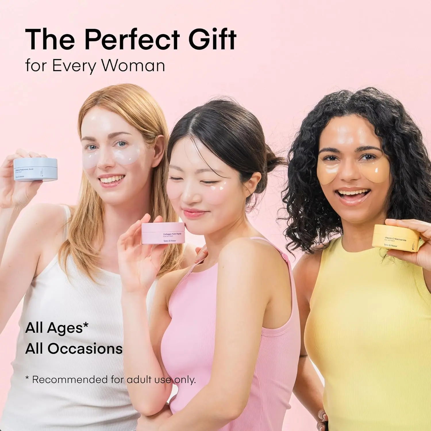 | Ingredients | Caffeine Hyaluronic Acid Eye Gel Patch: Water,Glycerin,Niacinamide,Caffeine,Sodium Hyaluronate,Sodium Guaiazulene Sulfonate,Adenosine,Calcium Chloride,Glucomannan,Butylene Glycol,1,2-Hexanediol,Chondrus Crispus Powder,PEG-60 Hydrogenated Castor Oil,Butyrospermum Parkii Butter,Pentylene Glycol,Ceratonia Siliqua Gum,Xanthan Gum,Glyceryl Caprylate,Ethylhexylglycerin,Dextrin,Hydroxyethylcellulose,Disodium EDTA,Gardenia Florida Fruit Extract. Peptide Collagen Eye Gel Patch: Water,Hydrolyzed Collagen,Potassium Hyaluronate,Glutathione,Ceramide NP,Dimethylsilanol Hyaluronate,Sodium Acetylated Hyaluronate,Sodium Hyaluronate Crosspolymer,Acetyl Hexapeptide-8,Hydroxypropyltrimonium Hyaluronate,Hydrolyzed Sodium Hyaluronate,Hydrolyzed Hyaluronic Acid,Hyaluronic Acid,Copper Tripeptide-1,Acetyl Tetrapeptide-5,Palmitoyl Tripeptide-1,Palmitoyl Tripeptide-5,Palmitoyl Pentapeptide-4,Hexapeptide-3,Hydroxyacetophenone,Monascus Extract,Gardenia Florida Fruit Extract,Caprylic/Capric Triglyceride,Hydrogenated Lecithin,Tocopheryl Acetate,Prunella Vulgaris Extract,Fucus Vesiculosus Extract. Vitamin C Eye Gel Patch: Water,Squalane,Ascorbic Acid,Citrus Junos Fruit Extract,Tranexamic Acid,Citrus Limon Fruit Extract,Hyaluroni |