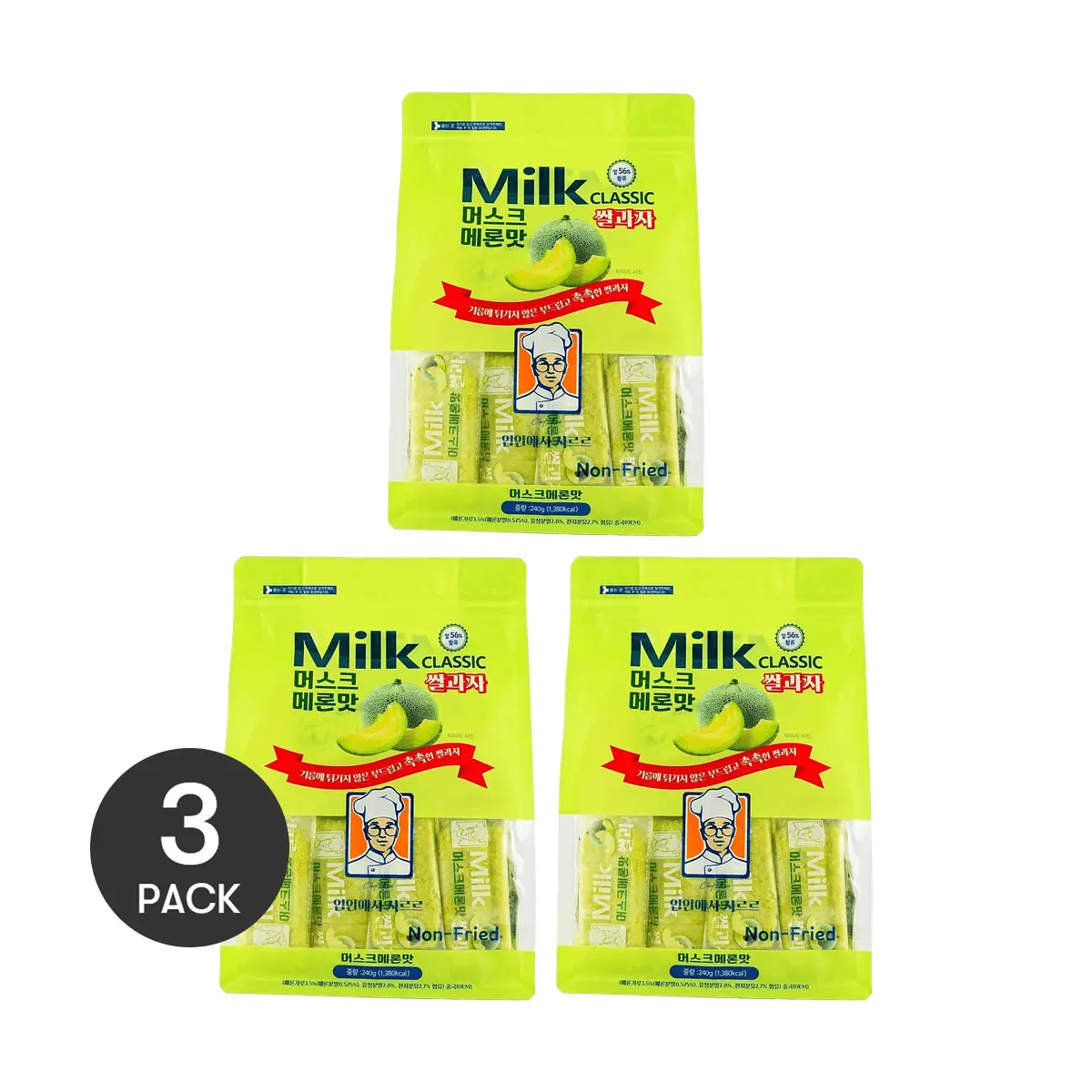 3 Packs New Flavor Korean Milk Classic Melon Rice Crackers 240g/Bag  3 Flavors to Choose- Healthy Non-Fried, Crispy & Airy Korean Snack