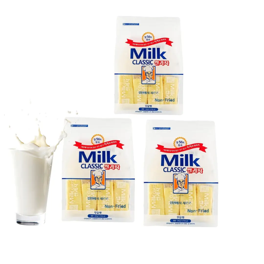 5. 3 Packs New Flavor Korean Milk Classic Melon Rice Crackers 240g/Bag 3 Flavors to Choose- Healthy Non-Fried, Crispy & Airy Korean Snack