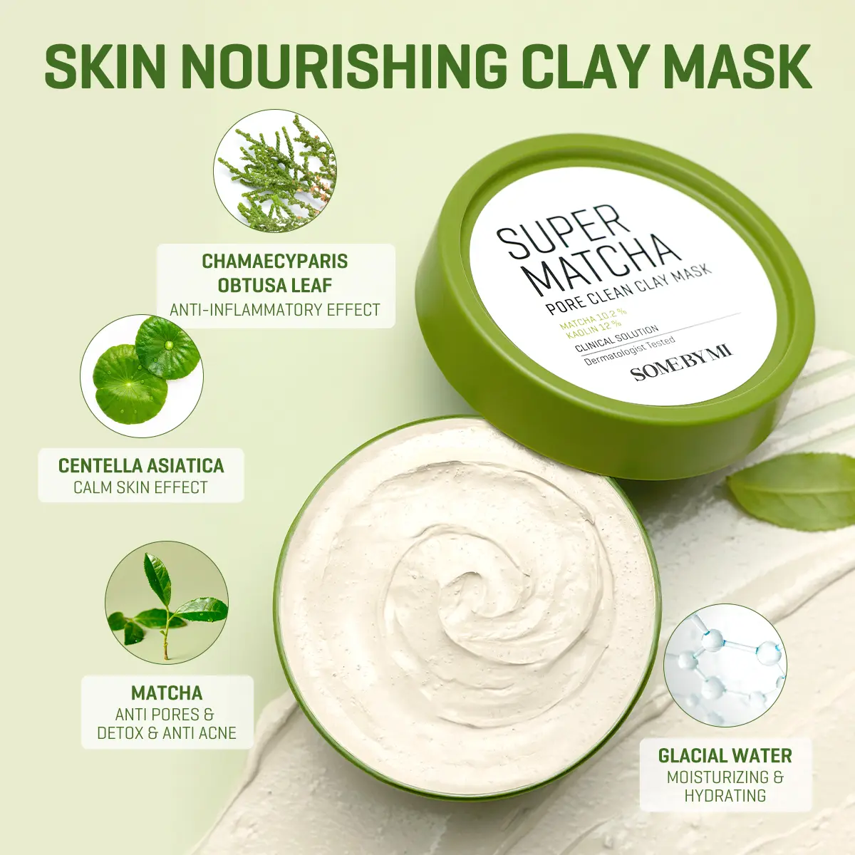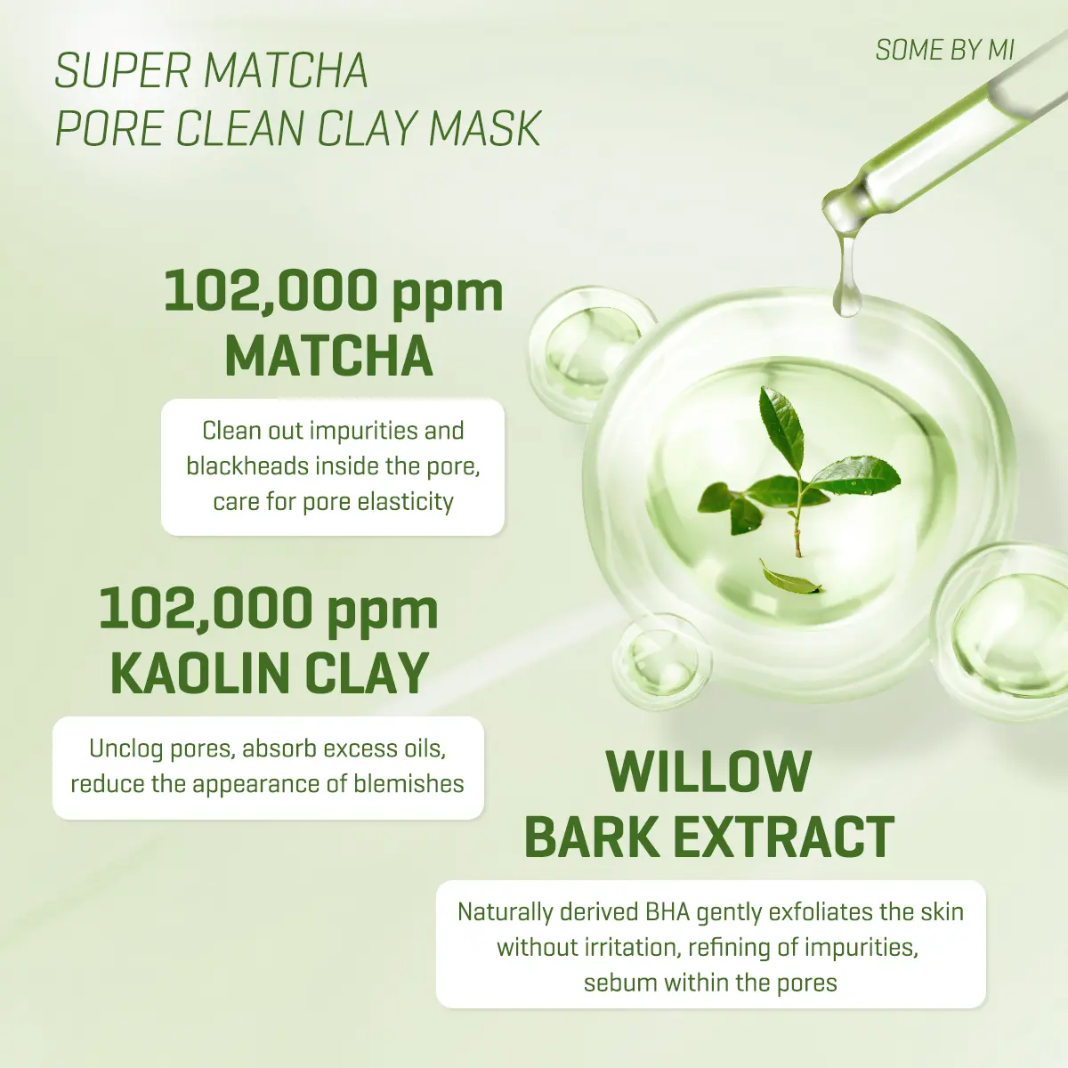 | Ingredients | Water,Kaolin(12 %),Glycerin,Camellia Sinensis Leaf Water(10.2 %),Titanium Dioxide(CI 77891),Bentonite,Magnesium Aluminum Silicate,Silica,Manicouagan Clay(1,000 ppm),Camellia Sinensis Leaf(50 ppm),Camellia Sinensis Leaf Powder(4,Houttuynia Cordata Powder,Centella Asiatica Extract,Camellia Sinensis Leaf Extract(100 ppm),Salix Alba (Willow) Bark Extract,Water(Glacier Water),Melaleuca Alternifolia (Tea Tree) Leaf Water,Water(Carbonated Water),Malt Extract,Allantoin,Madecassic Acid,Asiaticoside,Asiatic Acid,Capryloyl Salicylic Acid,Butylene Glycol,Dipropylene Glycol,Caprylyl Glycol,Hydroxyacetophenone,Xanthan Gum,Polyvinyl Alcohol,1,2-Hexanediol,Benzyl Glycol,Ethylhexylglycerin,Raspberry Ketone,Fragrance |