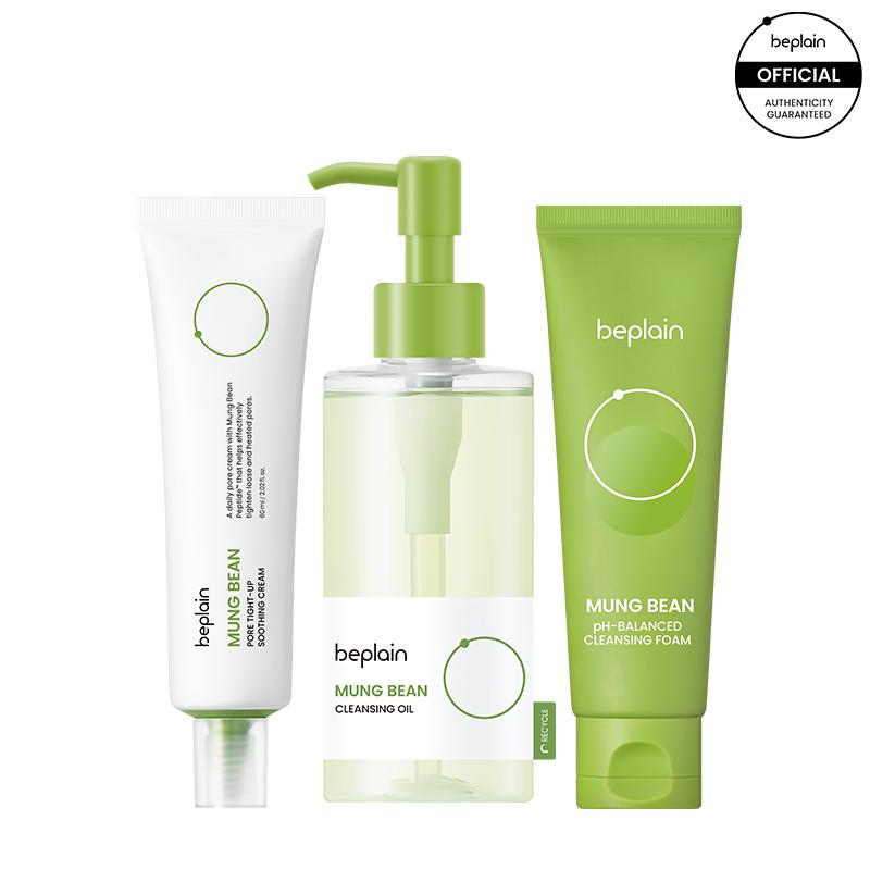 Mung Bean Cleansing Oil 200ml , Mung Bean Cleansing Foam 160ml, Mung Bean Peptide Soothing Cream 60ml