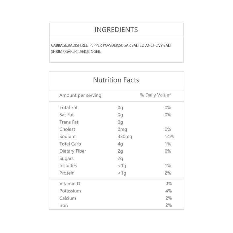 This perfectly fermented Napa cabbage kimchi brings the bold, tangy, and spicy flavors of traditional Korean cuisine right to your table. Packed with probiotics and bursting with flavor, it's a delicious and healthy addition to any meal.