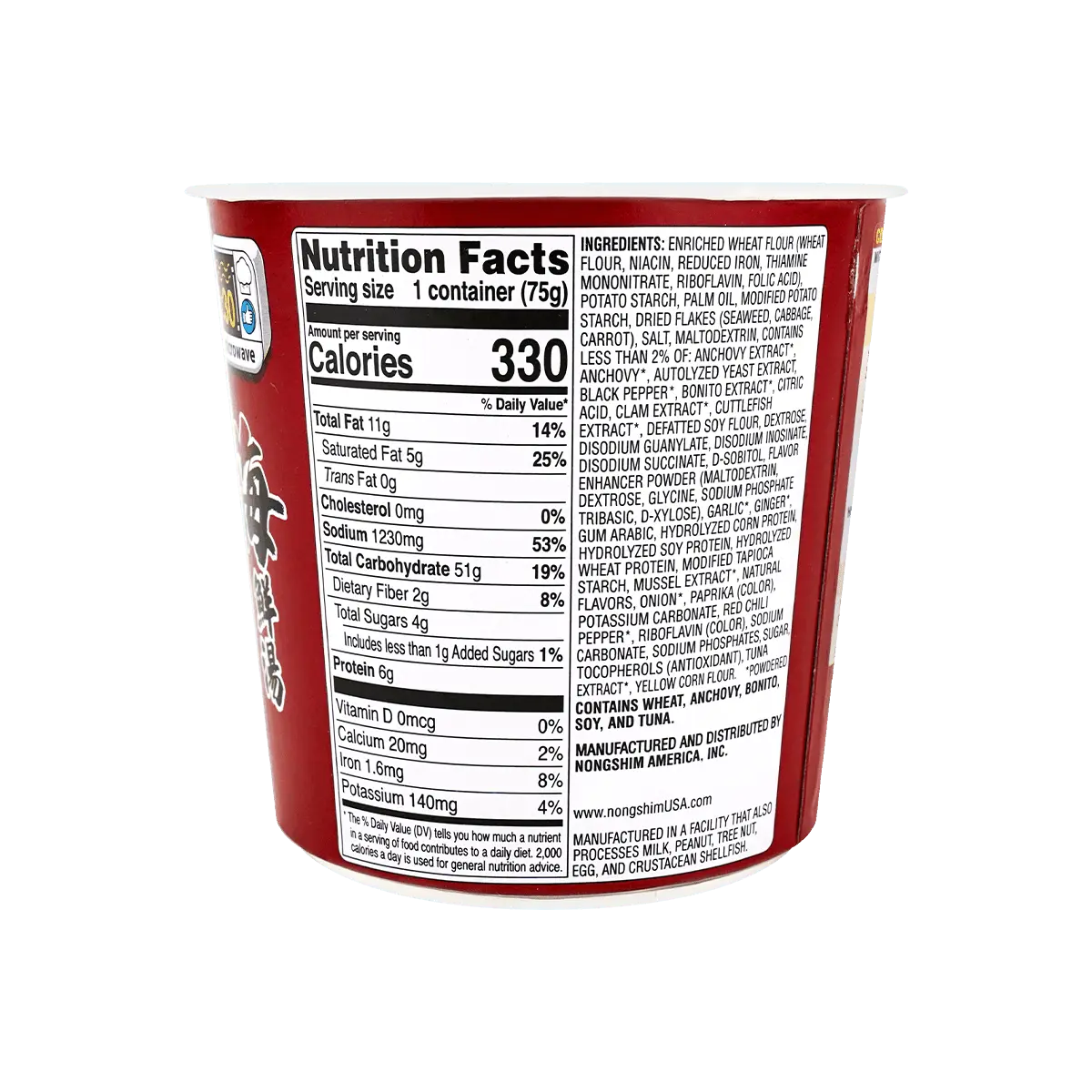 NONGSHIM Korean Spicy Seafood Udon Noodles Cup - 75g | Authentic Ramen Flavor