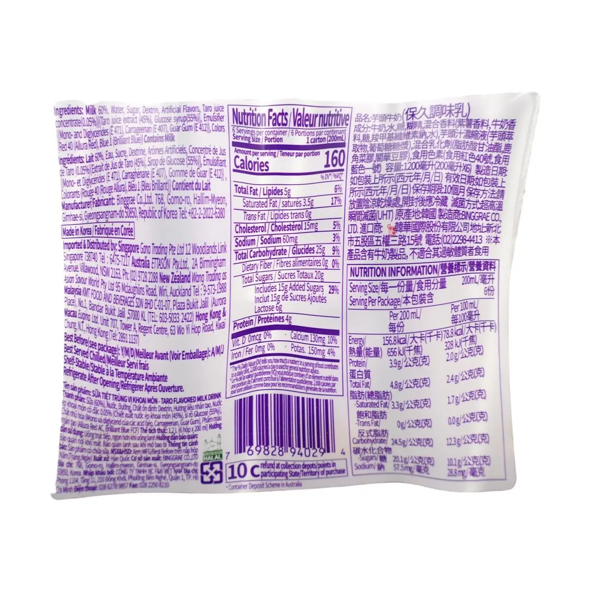 🌟 **Deliciously Unique Flavor**: Experience the rich and creamy taste of BINGGRAE's Korean Taro Milk. Perfect for those who love a sweet and nutty flavor in their beverages!