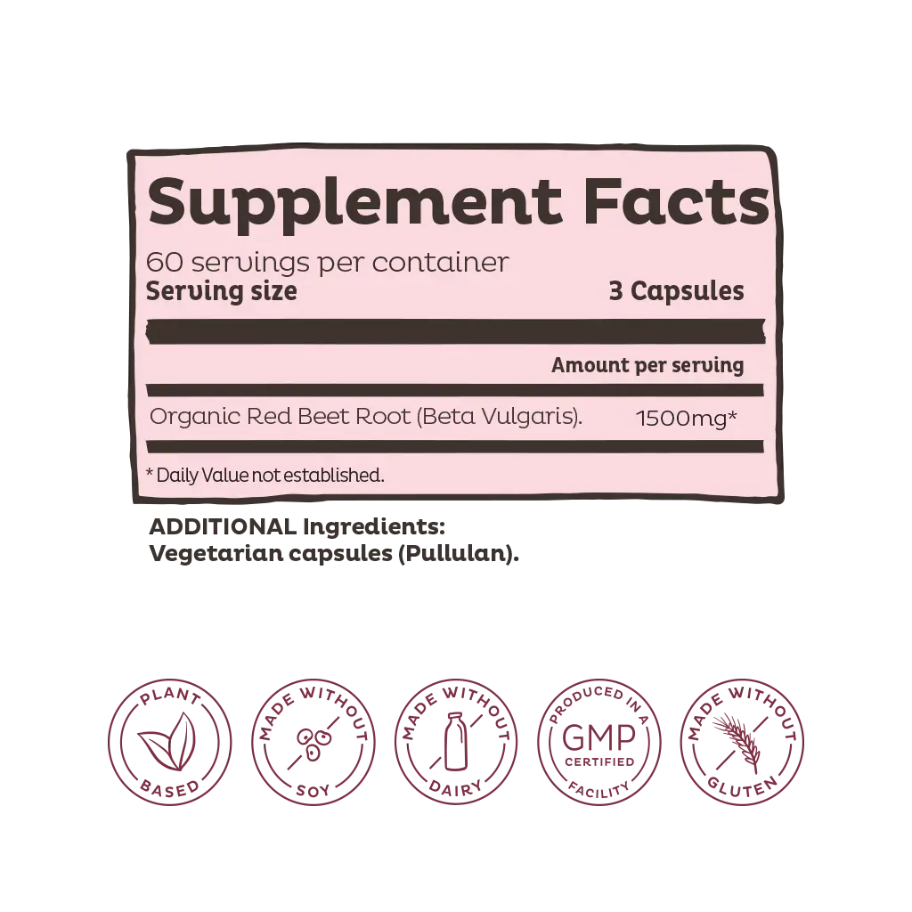Beets are a nutrient-rich superfood! 🍅 They offer vitamins, minerals, and plant compounds with medicinal properties. These benefits make beets essential for overall health. Our capsules are crafted from organic beetroot, ensuring purity. Perfect for enhancing your wellness routine with natural, plant-based components.