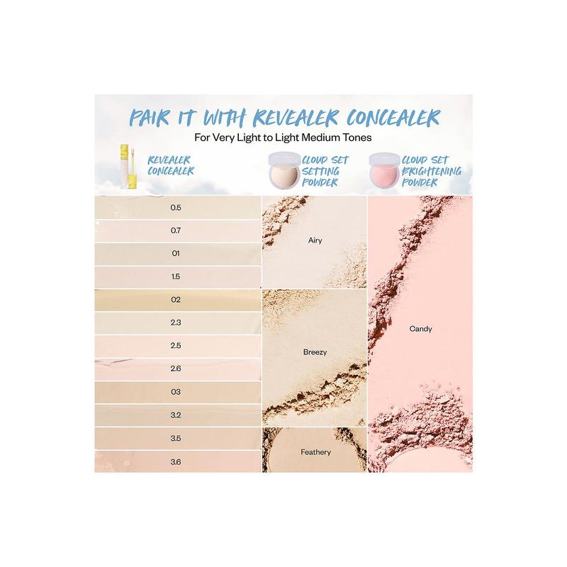 ·Apply Cloud Set in your skin tone match with the Kosas Powder Brush or Face Detailer Brush (sold separately).