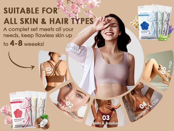 ✨ Tackle sensitive areas with confidence using our hard wax that grips hairs, not skin. Perfect for beginners, this hard wax kit efficiently strips away both coarse and fine hairs. Save money by avoiding a salon visit. Ideal for underarms, brows, and sensitive skin.
