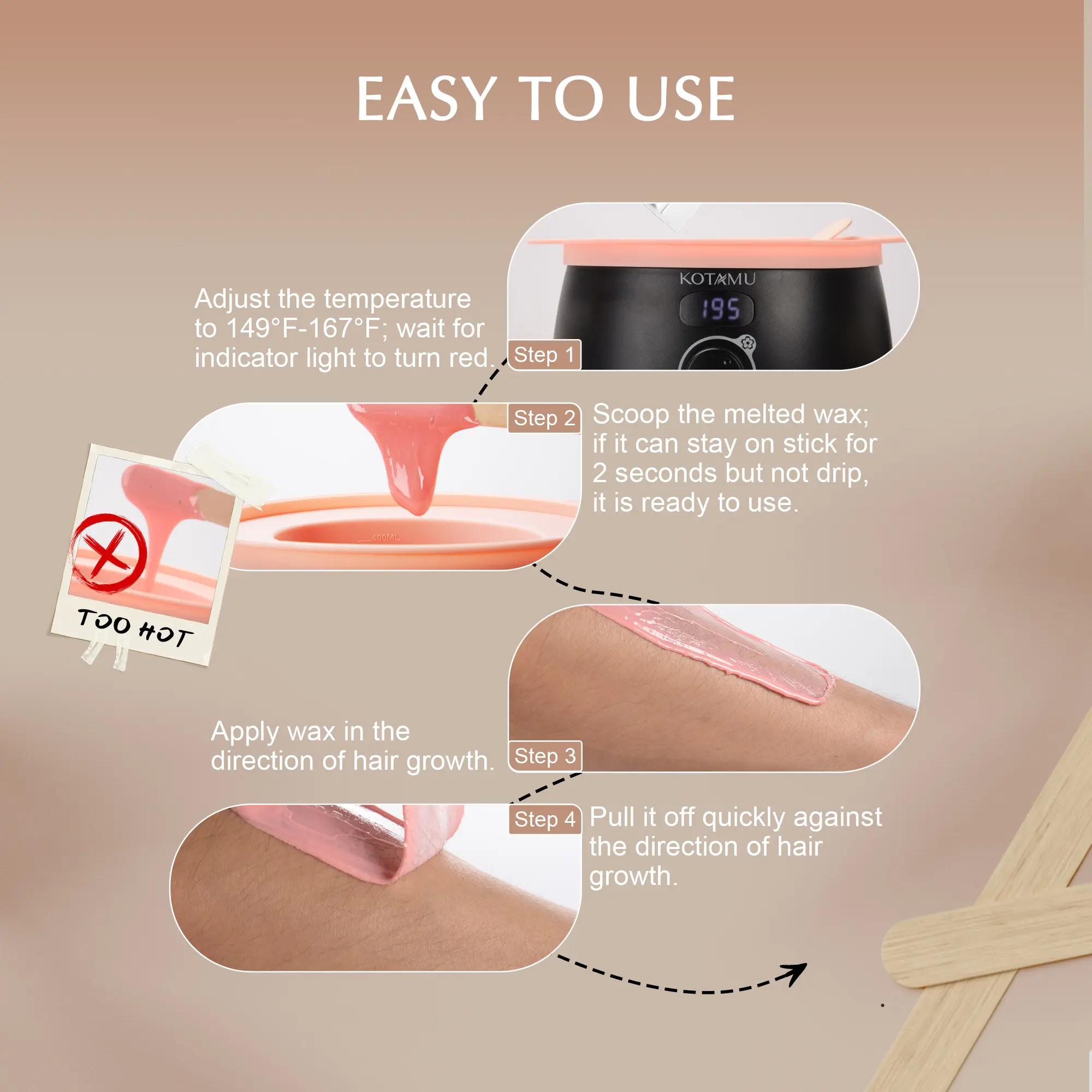 The wax is not the best but thst is quite expected. The temperature of the machine is weird since it doesn’t hold up its temperature. Also I think this was just me but the silicon was melting? I had to throw it. I really wanted to love bc the customer service was amazing 🥲