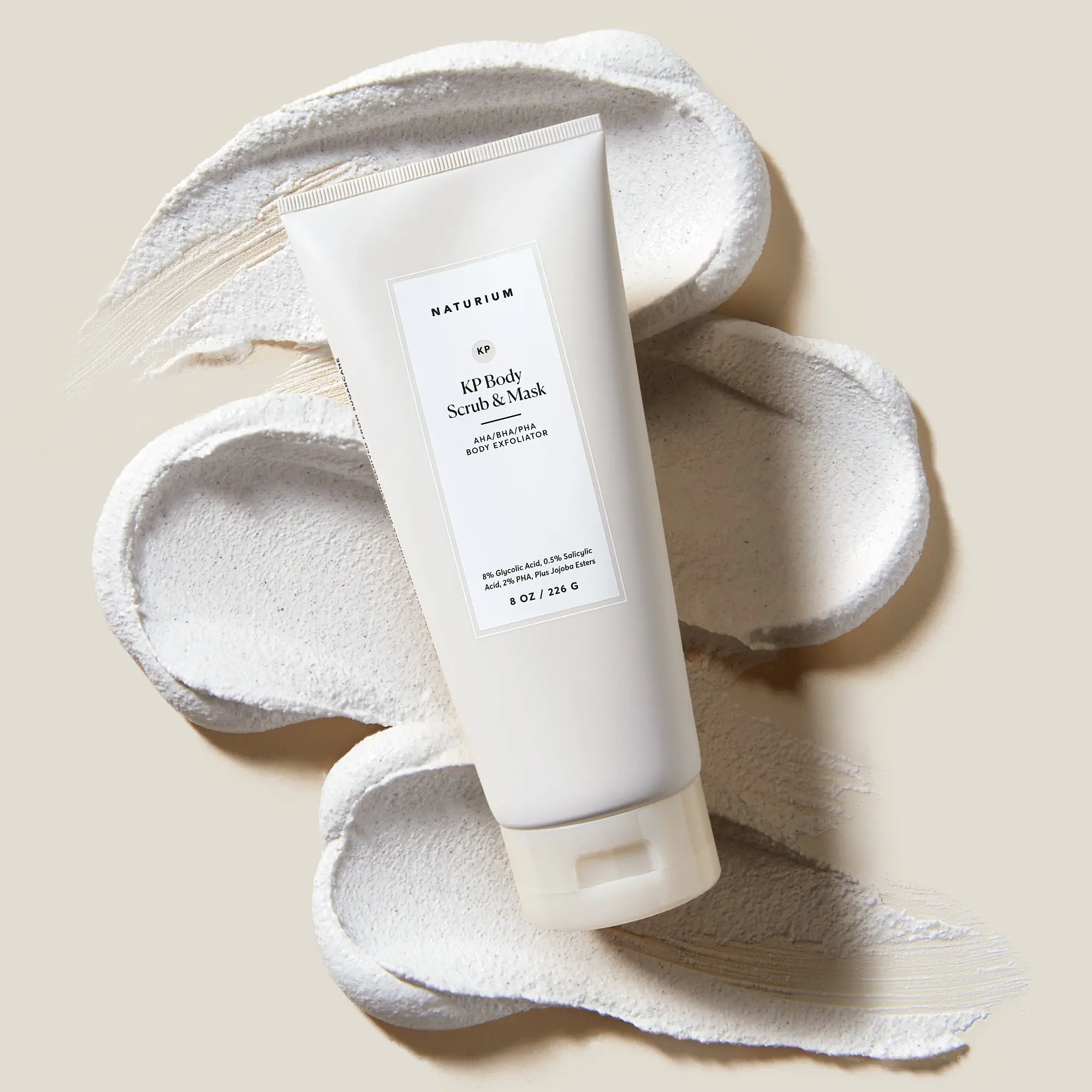 Our 3-in-1 KP body scrub exfoliant instantly transforms bumpy, dry, rough, and dull skin. Formulated with pumice and jojoba esters, plus AHA/BHA/PHA chemical exfoliants, the scrub grips, polishes, and smooths the appearance of skin. Use as a mask for an effective in-shower treatment.
