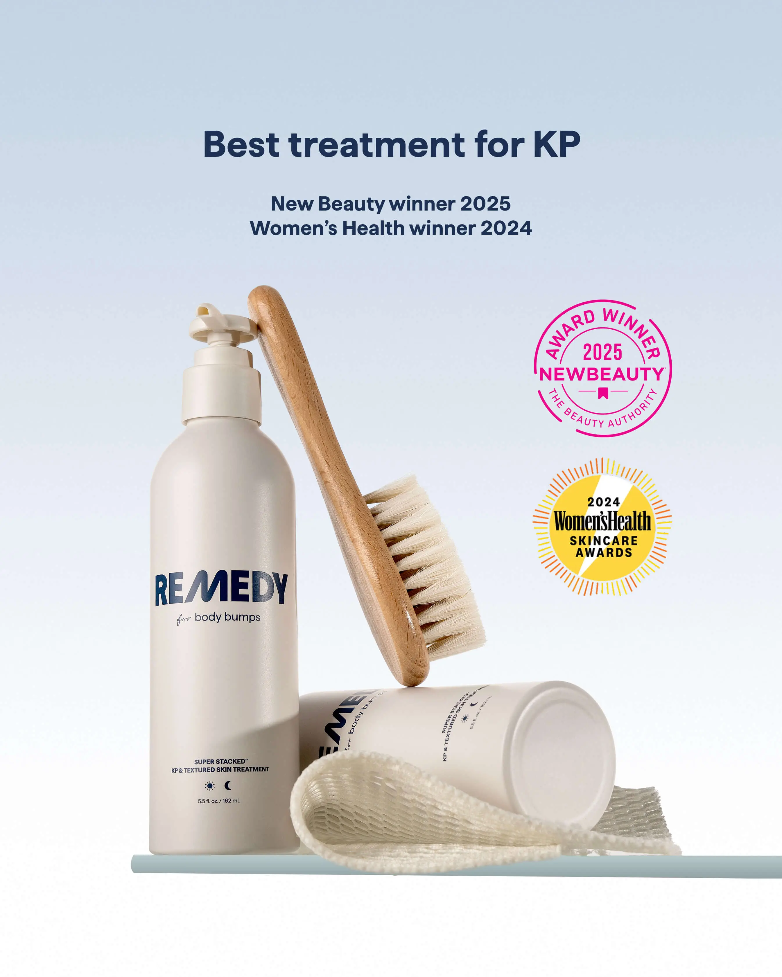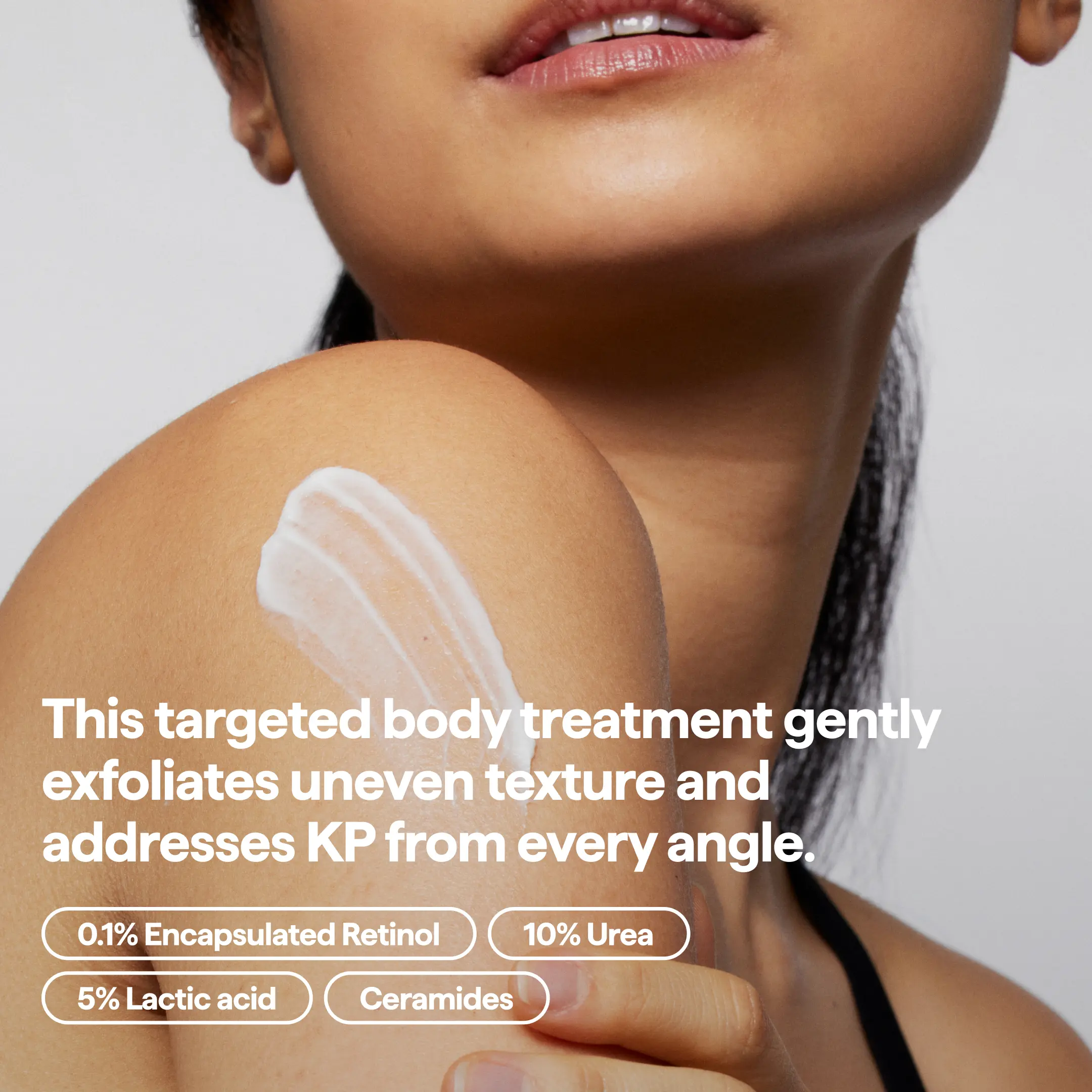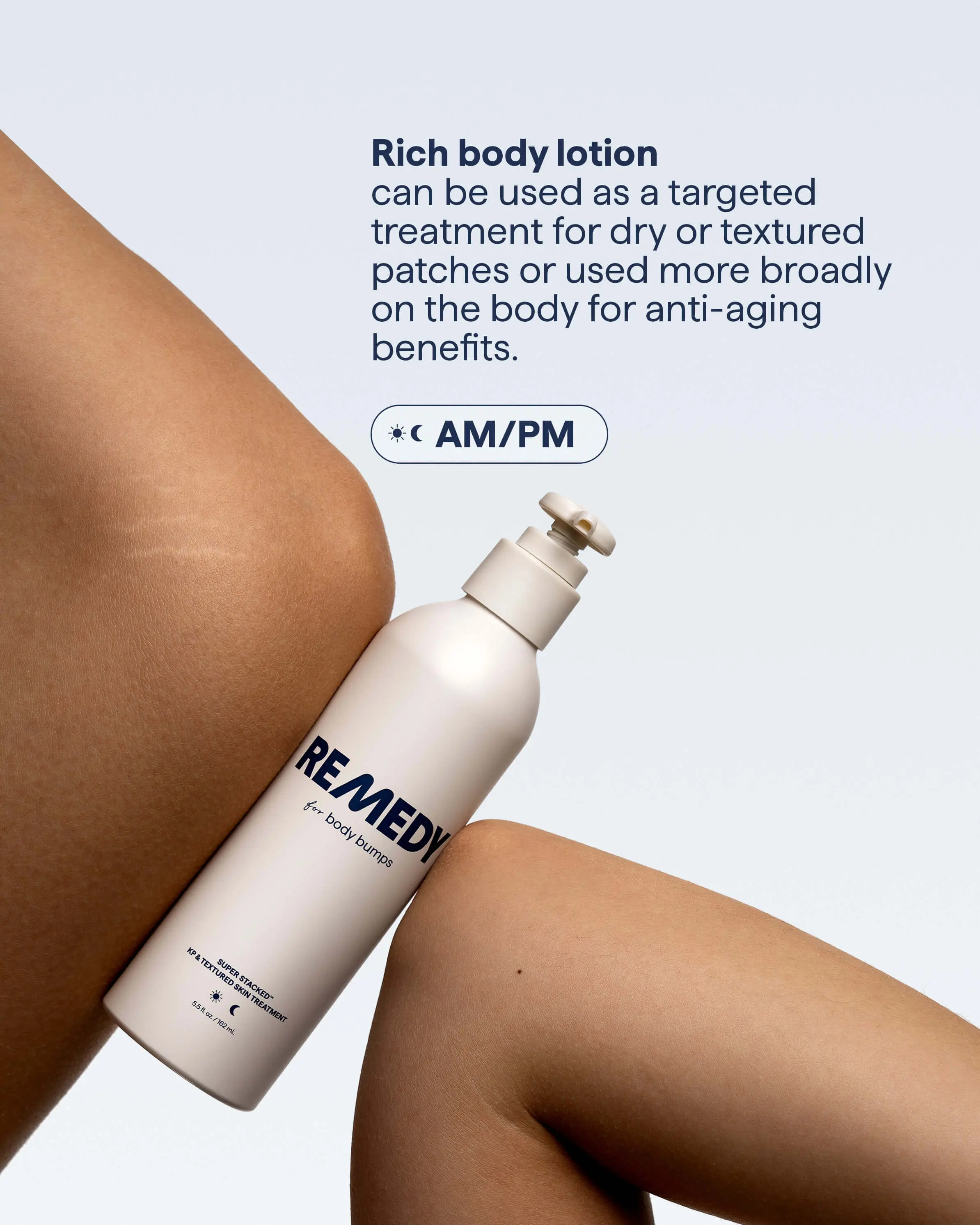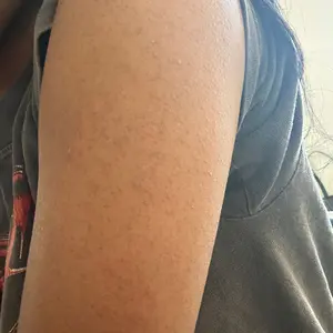 I absolutely love this lotion. I have KP on my upper thighs. I'm not sure if it's the same thing on my forearms because here I have raised bumps that are impossible to go away. After using Remedy Body for only a few days, my bumps have gone away. I can tell when I stop using it because the bumps come back. My forearms feel like silk after using this lotion and it lasts all day. I would 100% recommend this amazing product.