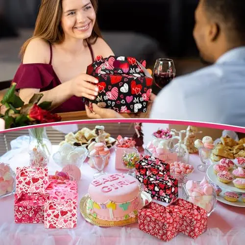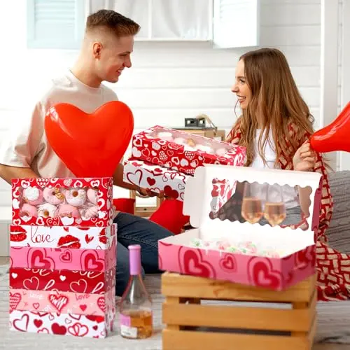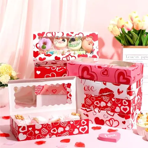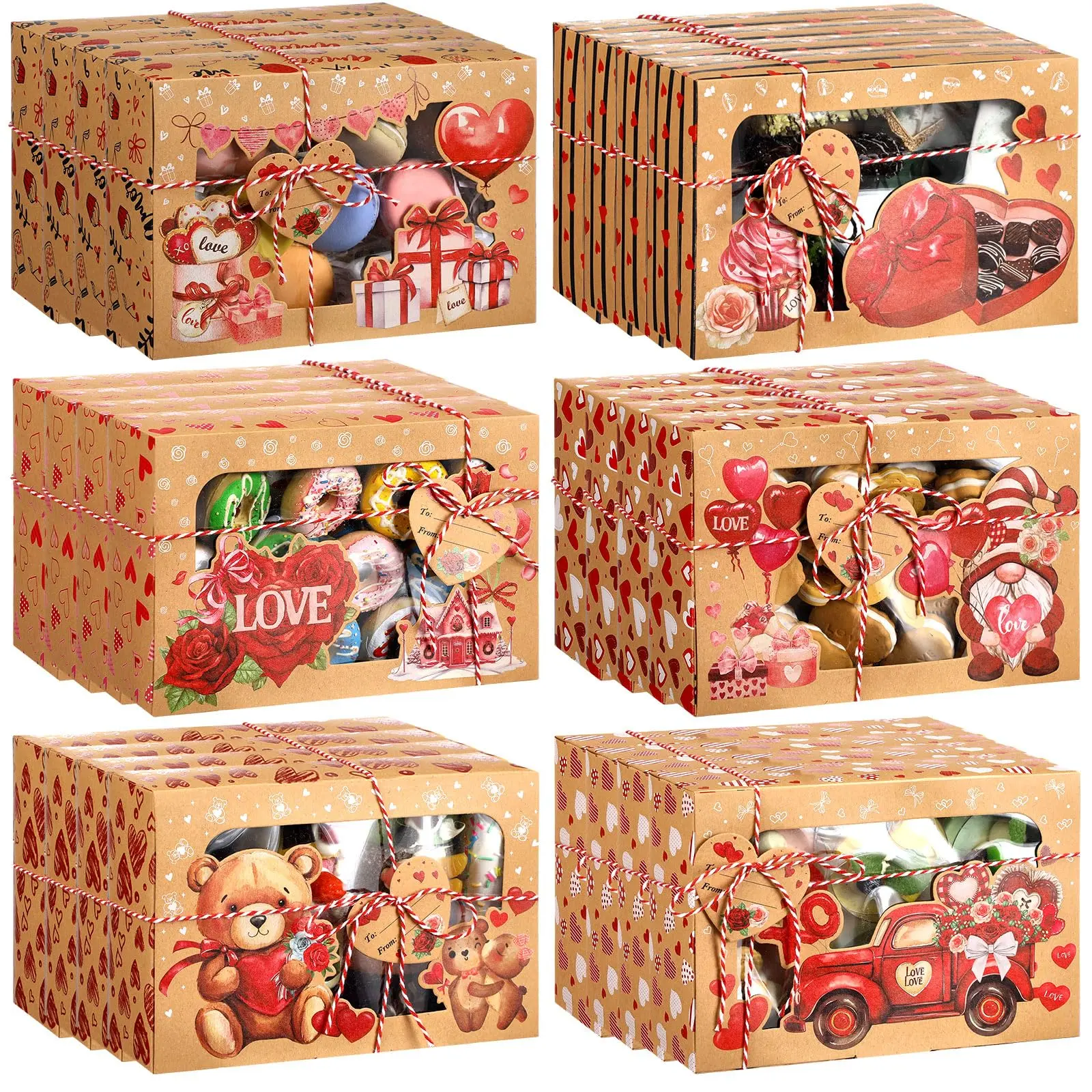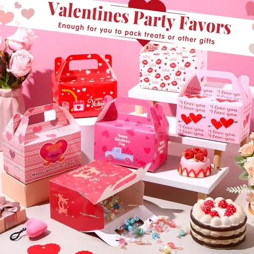 Our package includes 24 Valentine's Day cookie boxes, 24 Valentines cards, and 1 red and white hemp rope; There are 6 different designs of Valentines treat boxes, each with 4.